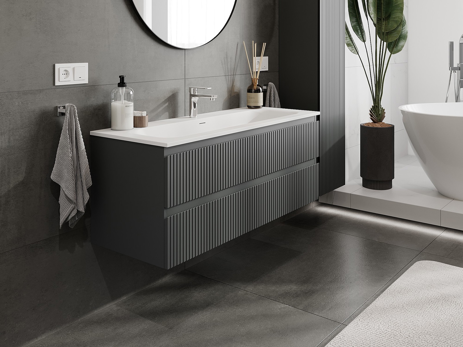 Корпусът на шкафа се доставя напълно сглобен, което означава максимално удобство и спестяване на време. Не е нужно да губите часове за сглобяване на мебела – просто го монтирайте на избраното място в банята. Това е идеалното решение за хора, които ценят бързия монтаж и незабавния ефект.