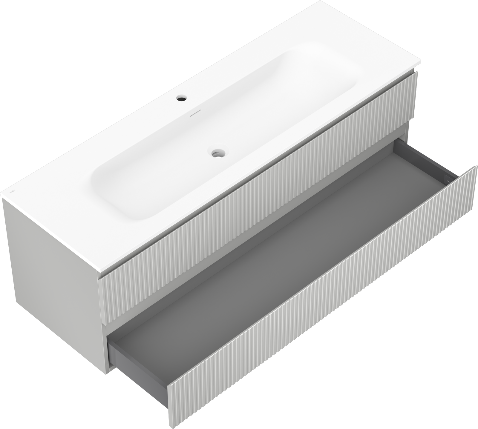 Изрезът в чекмеджето е проектиран по такъв начин, че да побере сифона, който е необходим в мивковите инсталации. Благодарение на това мебелът може да бъде монтиран напълно функционално, без да се налага отказване от пространството в чекмеджето заради инсталацията.