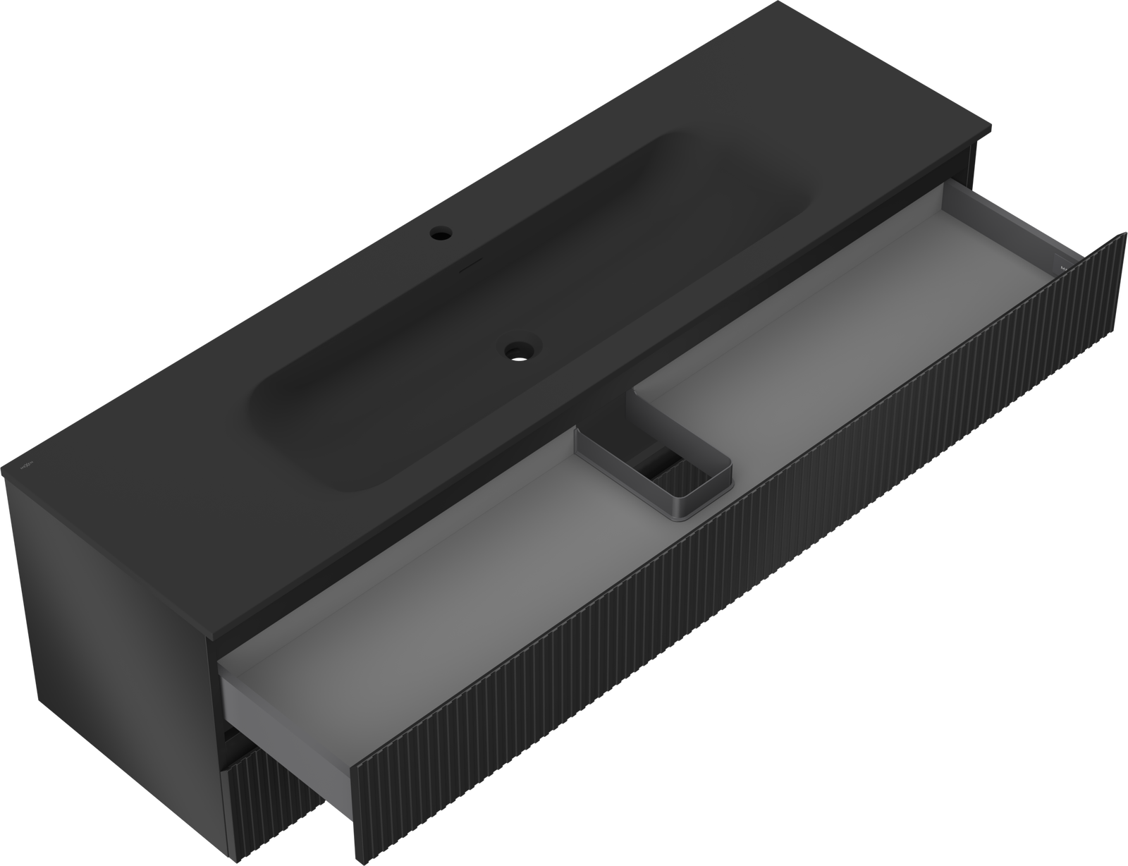 Изрезът в чекмеджето е проектиран по такъв начин, че да побере сифона, който е необходим в мивковите инсталации. Благодарение на това мебелът може да бъде монтиран напълно функционално, без да се налага отказване от пространството в чекмеджето заради инсталацията.