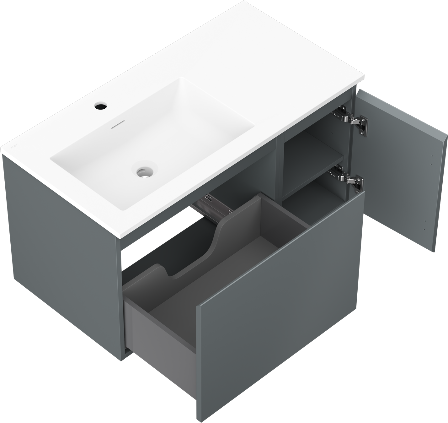 Mexen Orio шкаф за баня 90 см с мивка Otis ляв, 1S, 1D, мат графит/мат бял