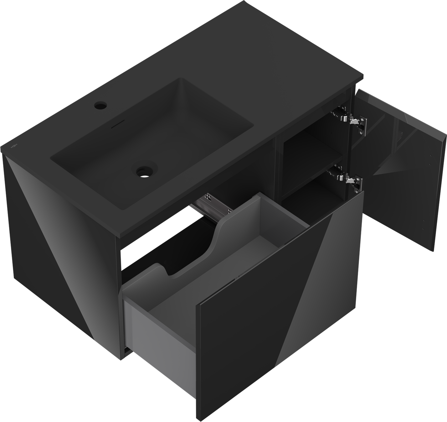 Mexen Orio шкаф за баня 90 см с мивка Otis лява, 1S, 1D, черен гланц/черен мат - 91A13-09047-3-BBFF70-W18L71