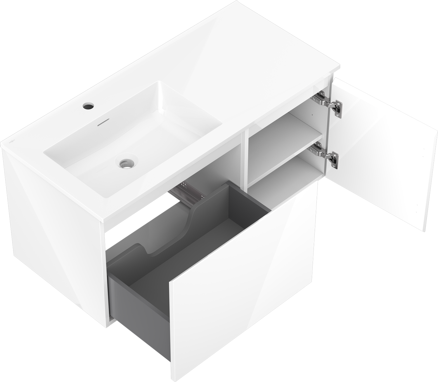 Mexen Orio шкаф за баня 100 см с мивка Otis лява, 1S, 1D, бял гланц - 91A13-10047-3-BBFF00-W18L00