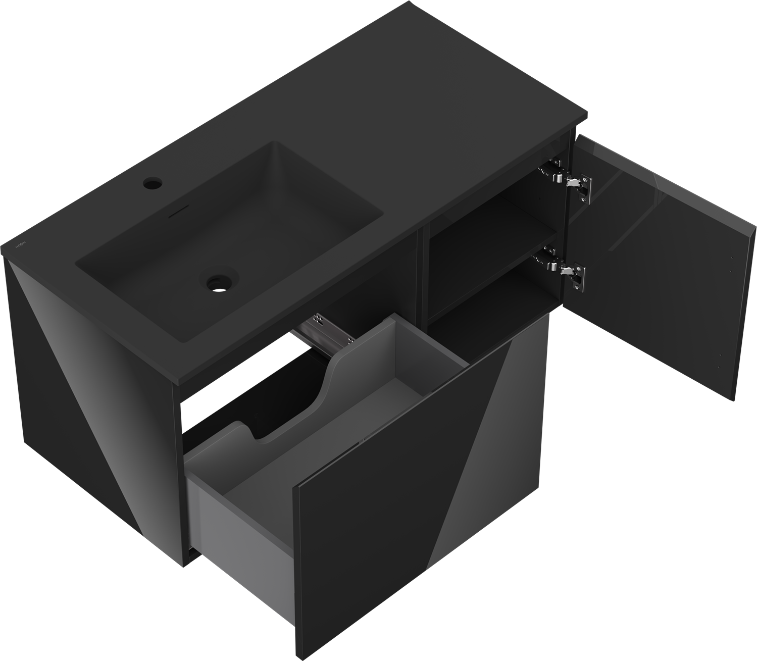 Mexen Orio баня шкаф 100 см с мивка Otis лява, 1S, 1D, черен гланц/черен мат - 91A13-10047-3-BBFF70-W18L71
