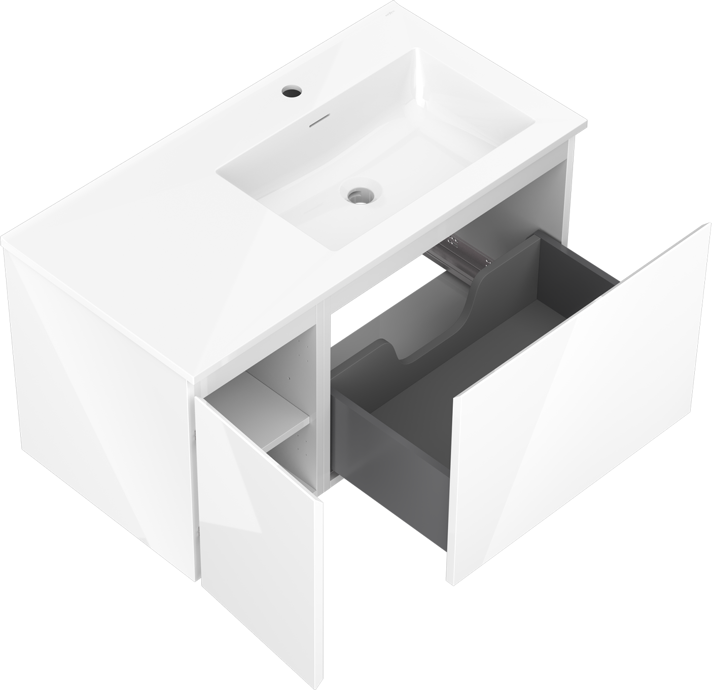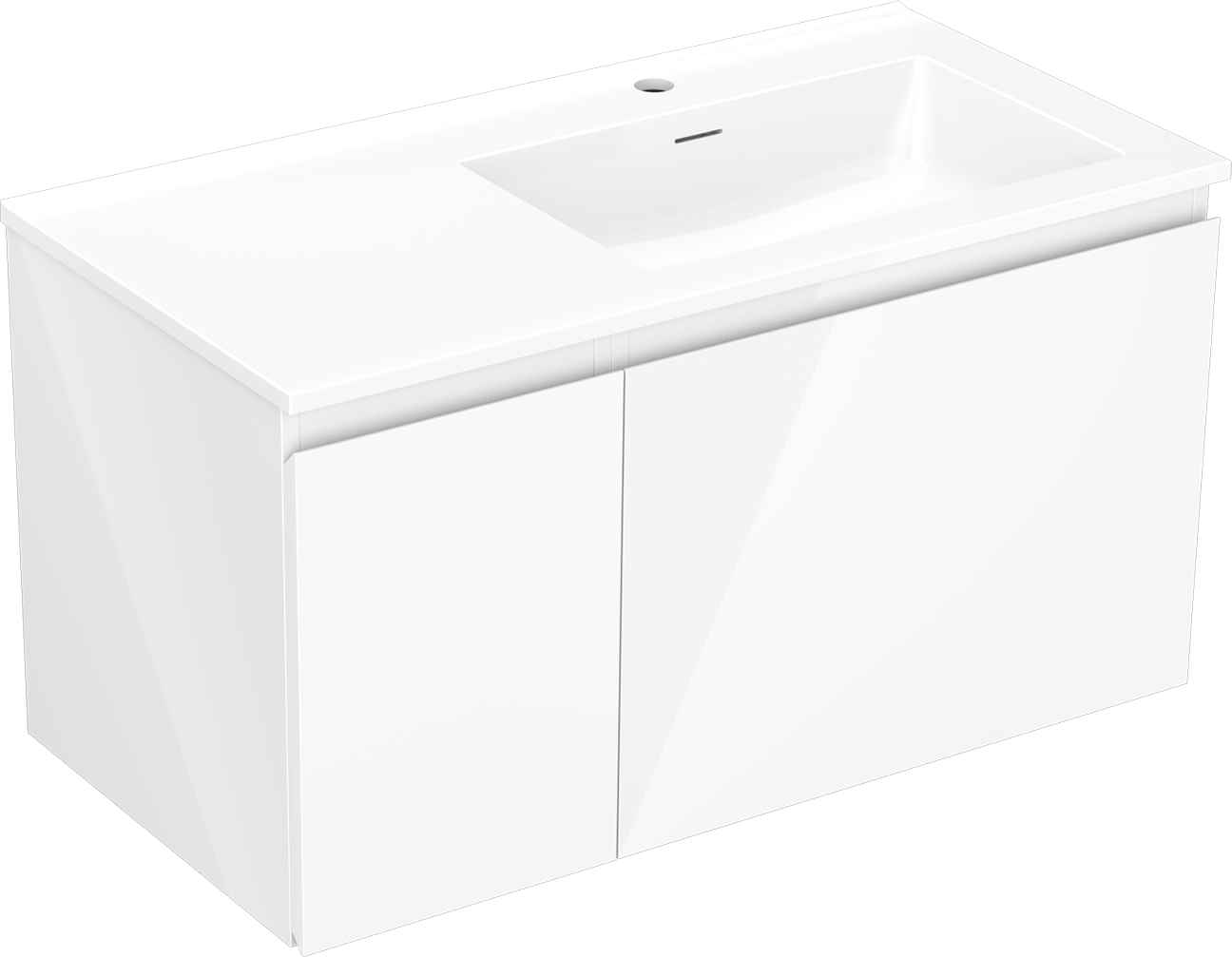 Mexen Orio шкаф за баня 90 см с мивка Otis дясна, 1S, 1D, бял гланц - 91A13-09047-3-BBFF00-W18P00