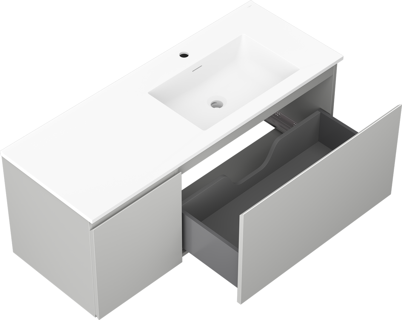 Mexen Orio шкаф за баня 120 см с мивка Otis дясна, 1S, 1D, сиво мат/бяло мат