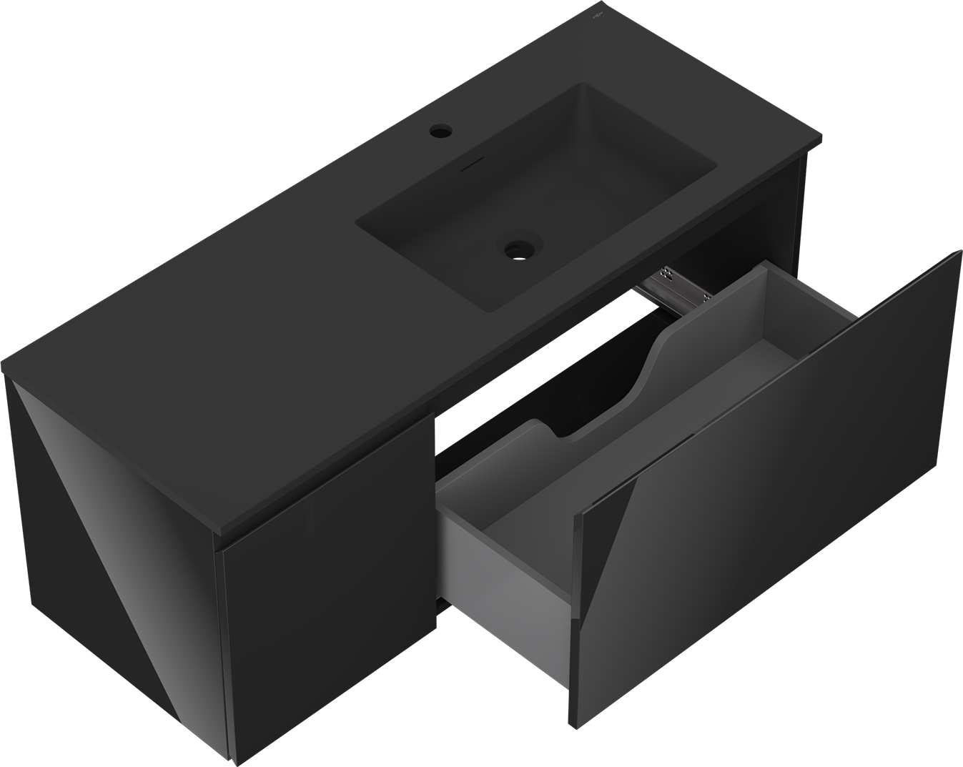 Mexen Orio шкаф за баня 120 см с мивка Otis дясна, 1S, 1D, черен гланц/черен мат - 91A13-12047-3-BBFF70-W18P71