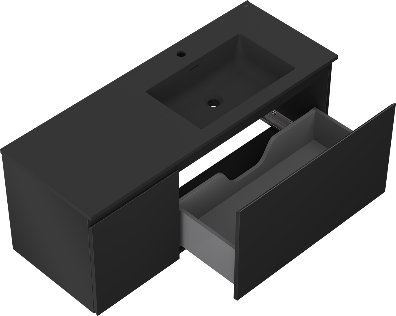 Mexen Orio шкафче за баня 120 см с мивка Otis дясна, 1S, 1D, черен мат - 91A13-12047-3-BBFF71-W18P71
