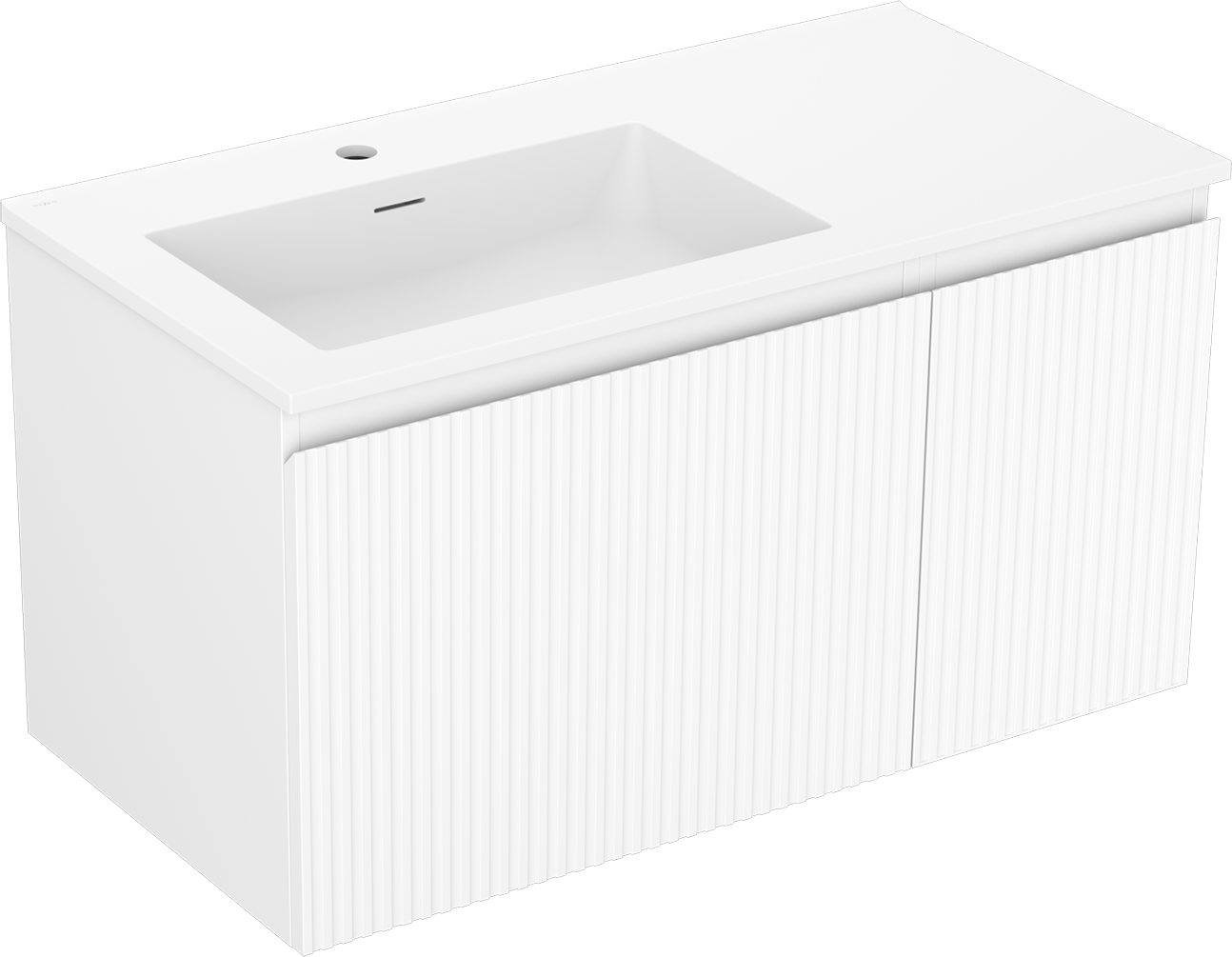 Mexen Rivel 90 см баня шкаф с мивка Otis лява, 1S, 1D, нагъвани, бял мат - 91A23-09047-3-BBFF01-W18L01