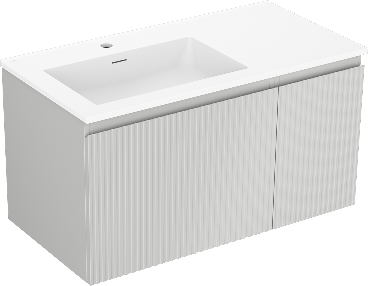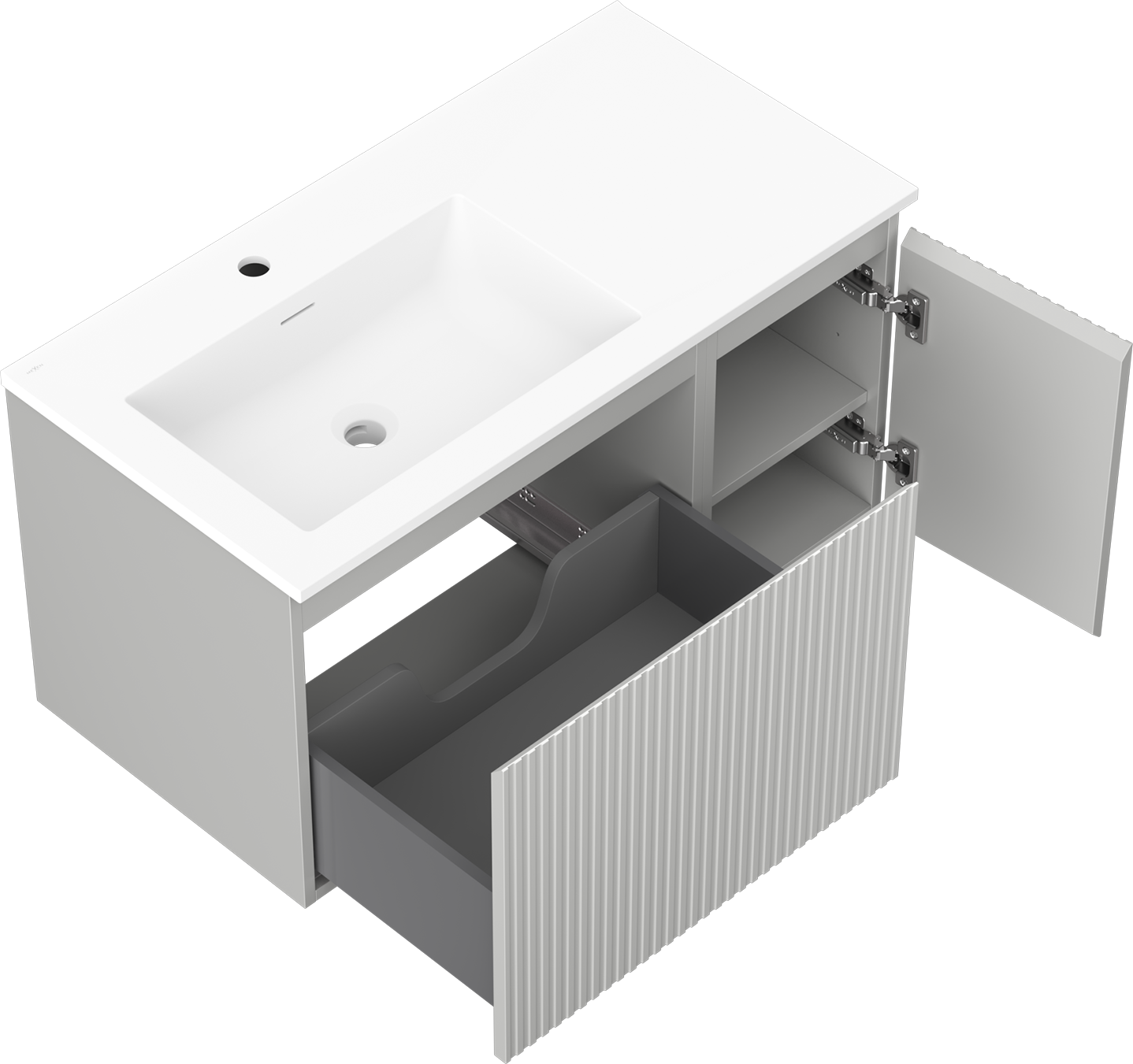 Mexen Rivel баня шкаф 90 см с мивка Otis лява, 1S, 1D, гравиран, сив мат/бял мат - 91A23-09047-3-BBFF62-W18L01