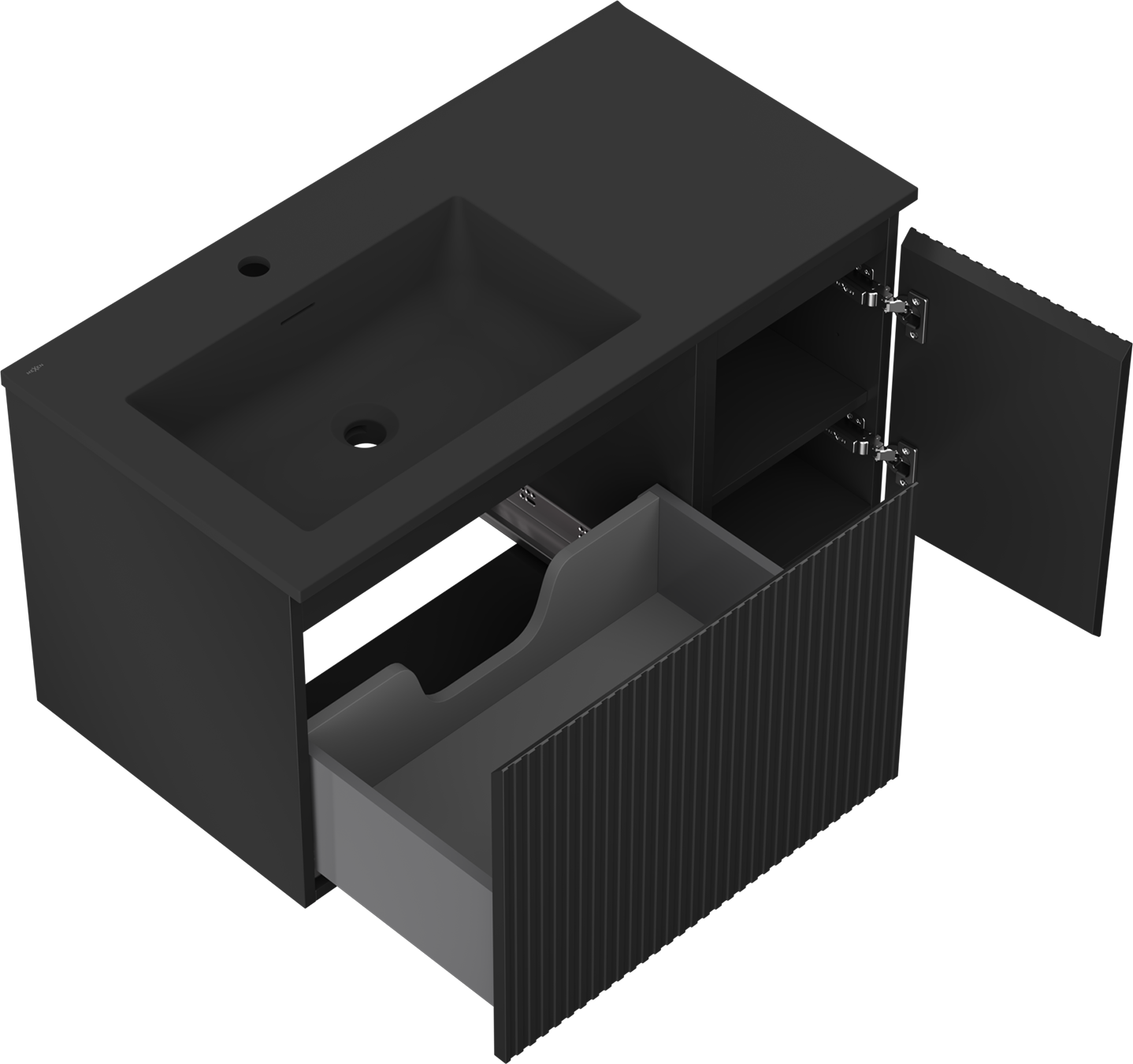 Mexen Rivel баня шкаф 90 см с мивка Otis лява, 1S, 1D, оребрена, черна мат - 91A23-09047-3-BBFF71-W18L71