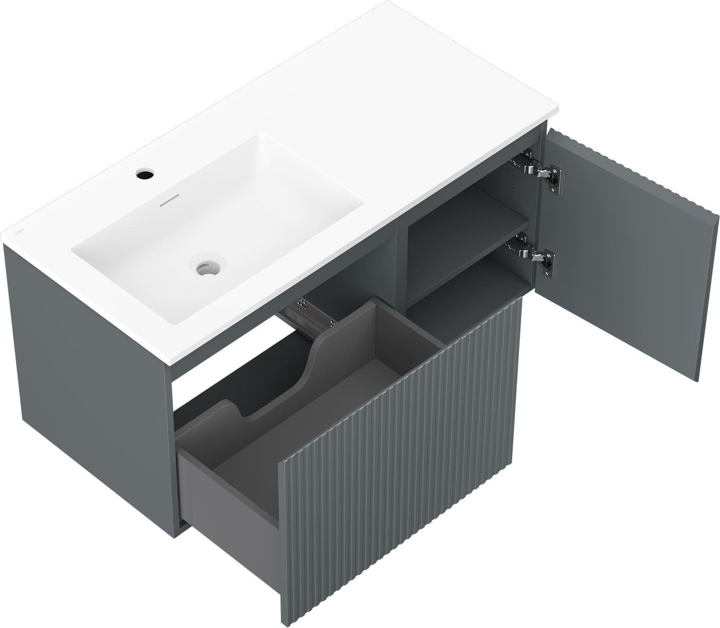 Mexen Rivel баня шкаф 100 см с мивка Otis лява, 1S, 1D, рифован, графит мат/бял мат - 91A23-10047-3-BBFF66-W18L01