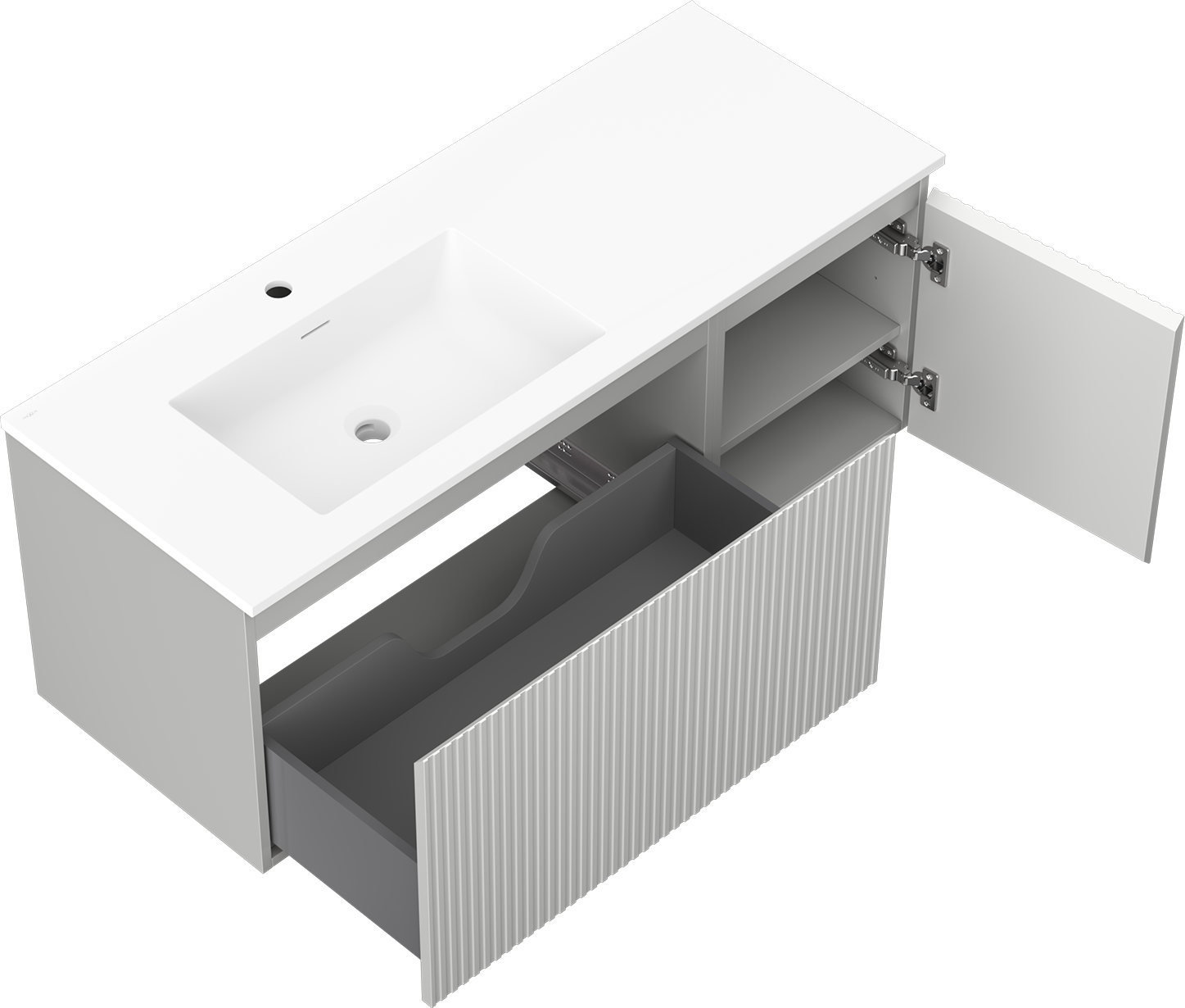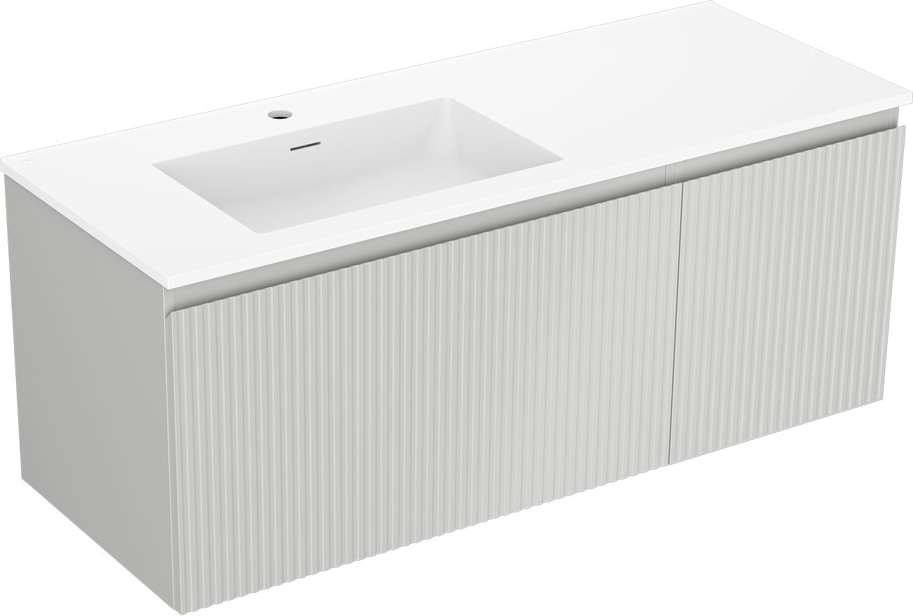 Mexen Rivel шкаф за баня 120 см с мивка Otis лява, 1S, 1D, рифелована, сив мат/бял мат - 91A23-12047-3-BBFF62-W18L01