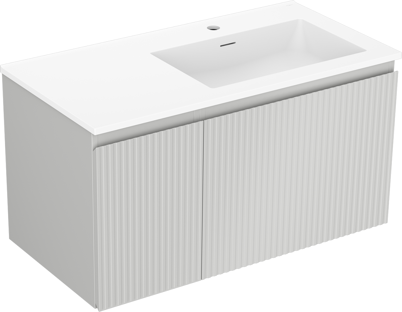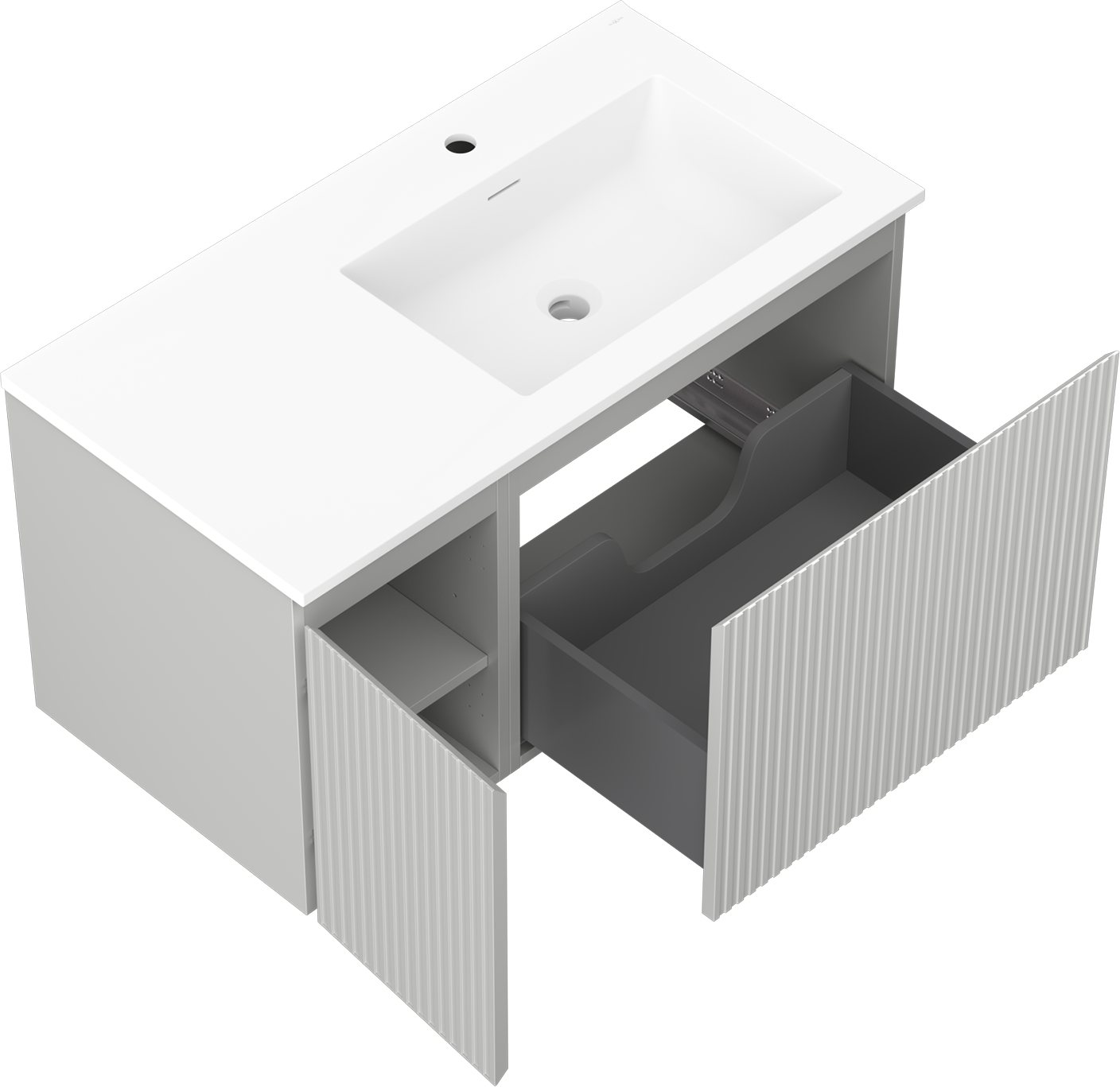 Mexen Rivel шкаф за баня 90 см с мивка Otis дясна, 1S, 1D, рифлен, сив мат/бял мат - 91A23-09047-3-BBFF62-W18P01