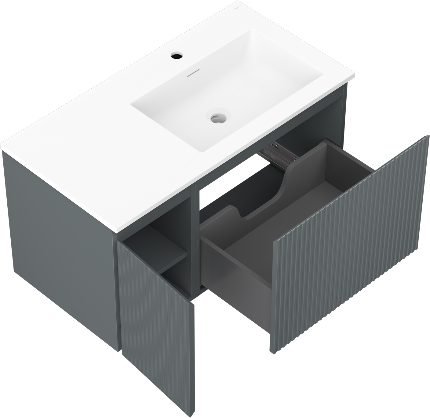 Mexen Rivel шкафче за баня 90 см с мивка Otis дясна, 1S, 1D, релефно, графит
