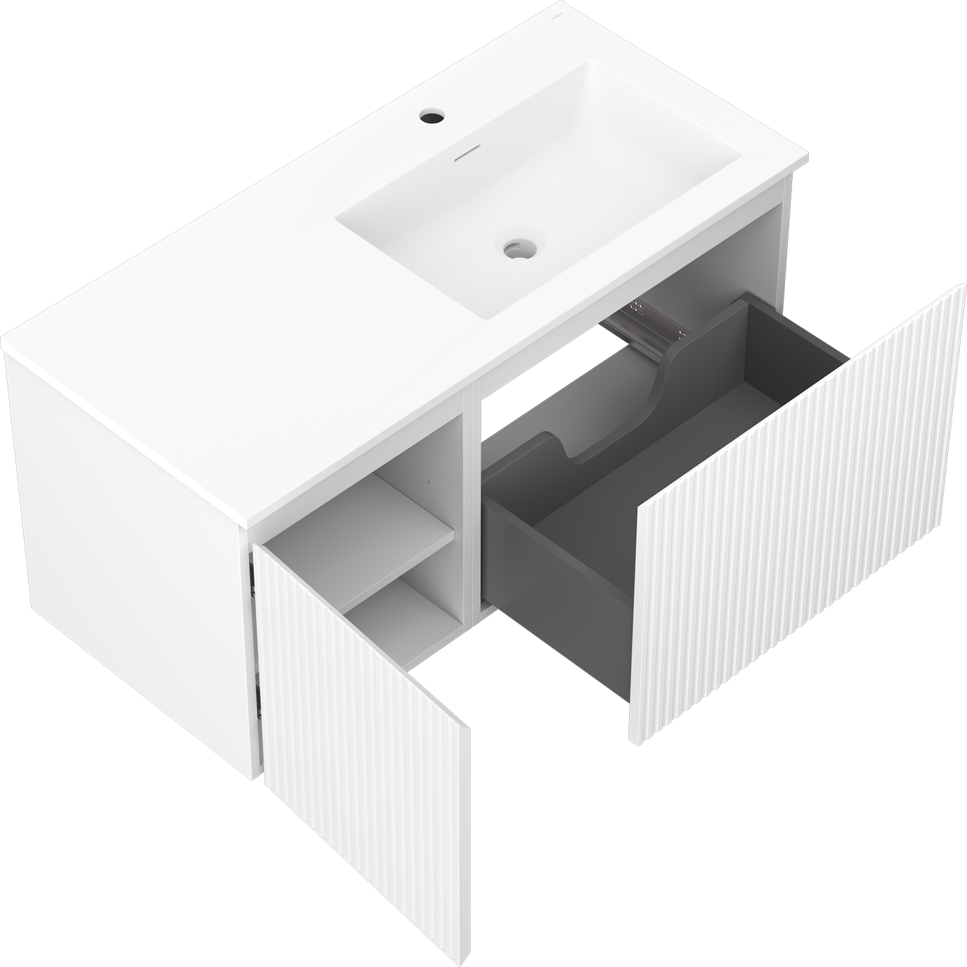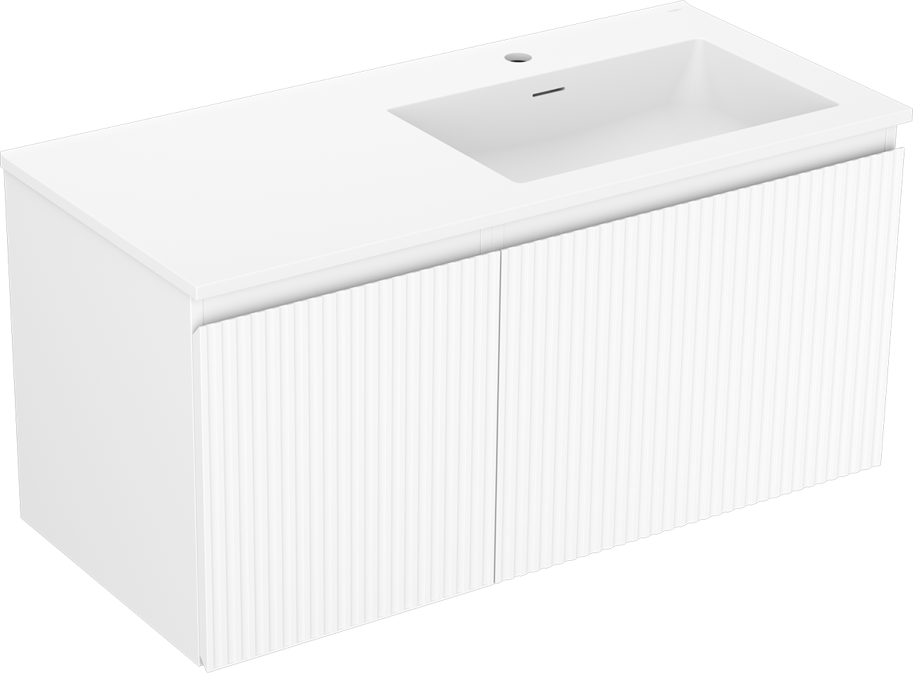 Mexen Rivel шкафче за баня 100 см с мивка Otis дясна, 1S, 1D, оребрен, бял мат - 91A23-10047-3-BBFF01-W18P01