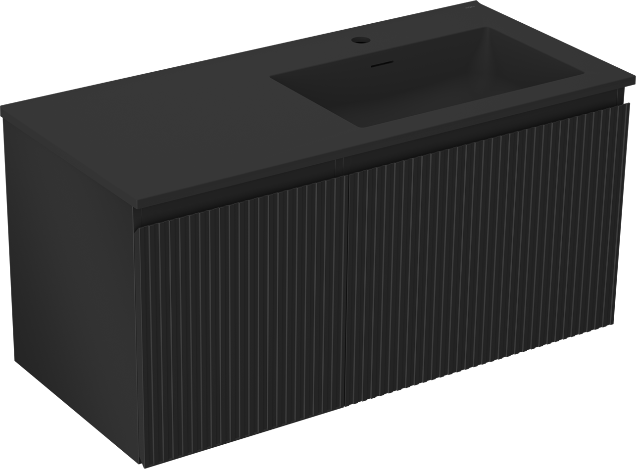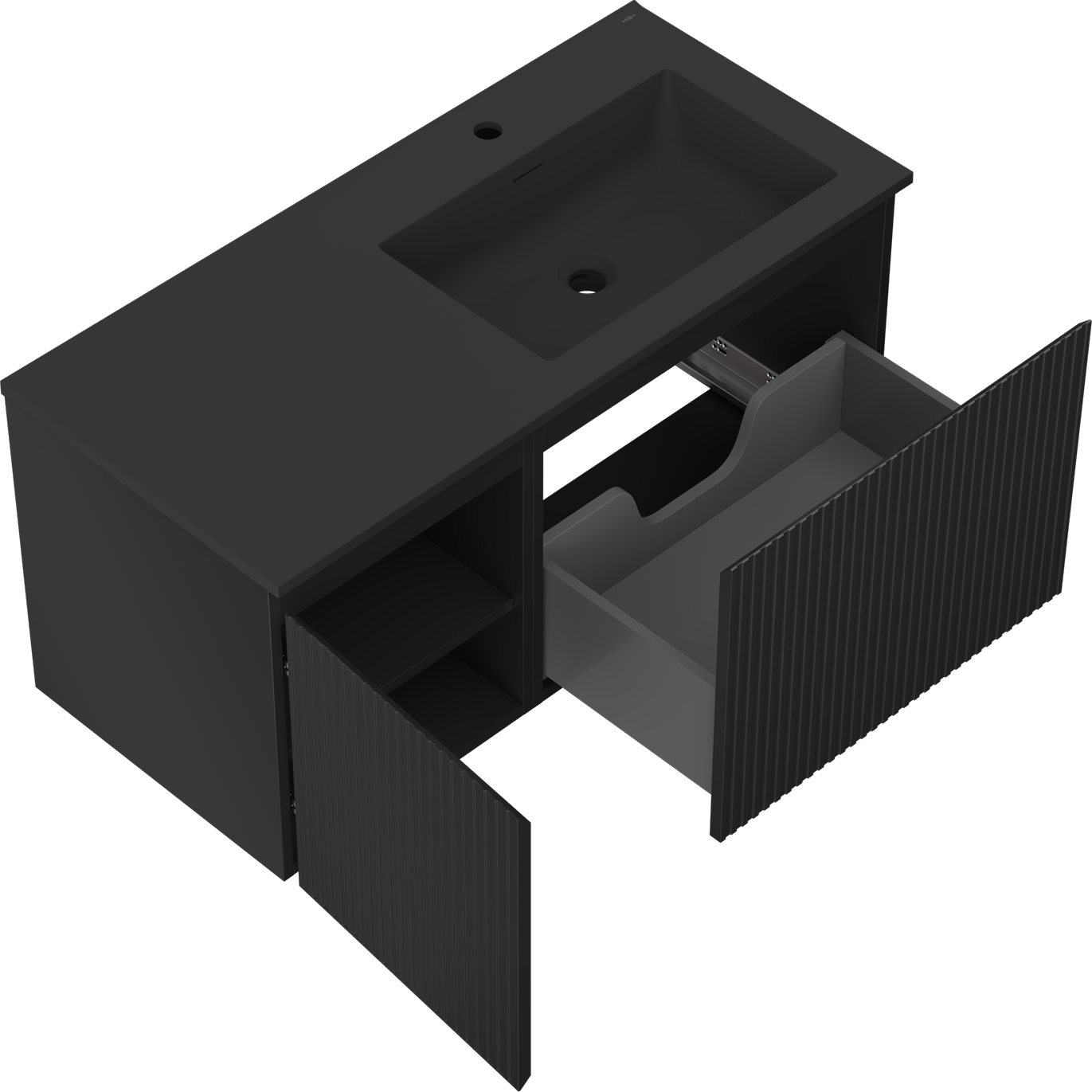 Mexen Rivel шкаф за баня 100 cm с мивка Otis дясна, 1S, 1D, рифлована, черна мат - 91A23-10047-3-BBFF71-W18P71