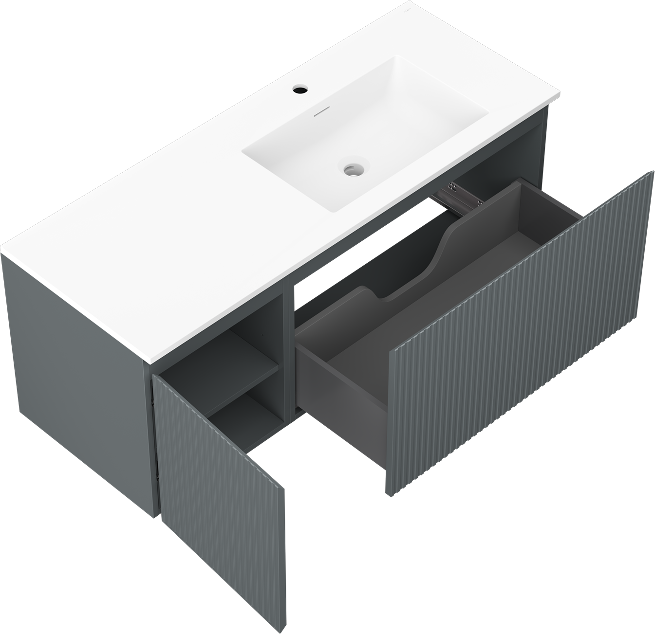 Mexen Rivel шкаф за баня 120 см с мивка Otis дясна, 1S, 1D, набраздена, графит/бял мат - 91A23-12047-3-BBFF66-W18P01