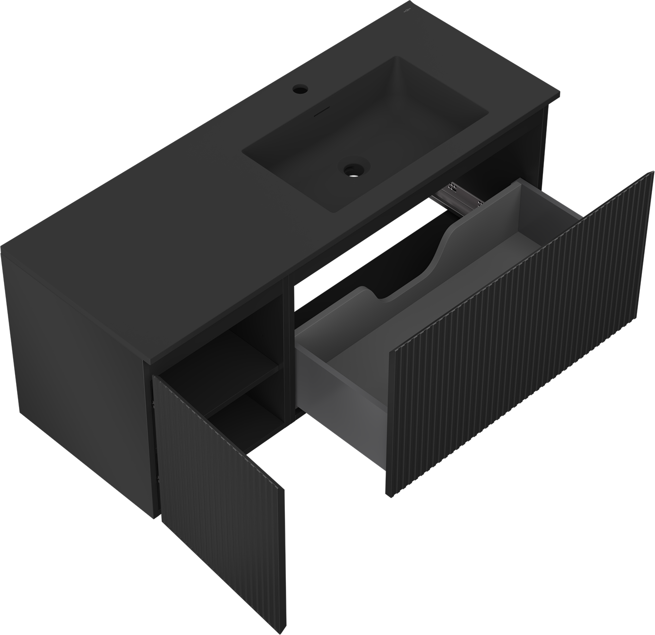 Mexen Rivel баня шкаф 120 см с мивка Otis дясна, 1S, 1D, рифелована, черен мат - 91A23-12047-3-BBFF71-W18P71