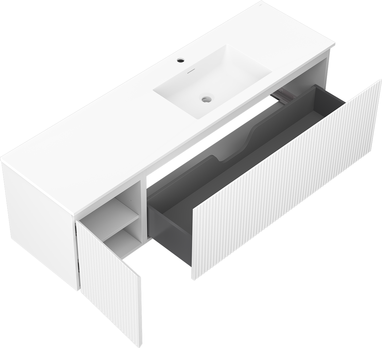 Mexen Rivel шкаф за баня 160 см с мивка Otis дясна, 1S, 1D, набразден, бял мат