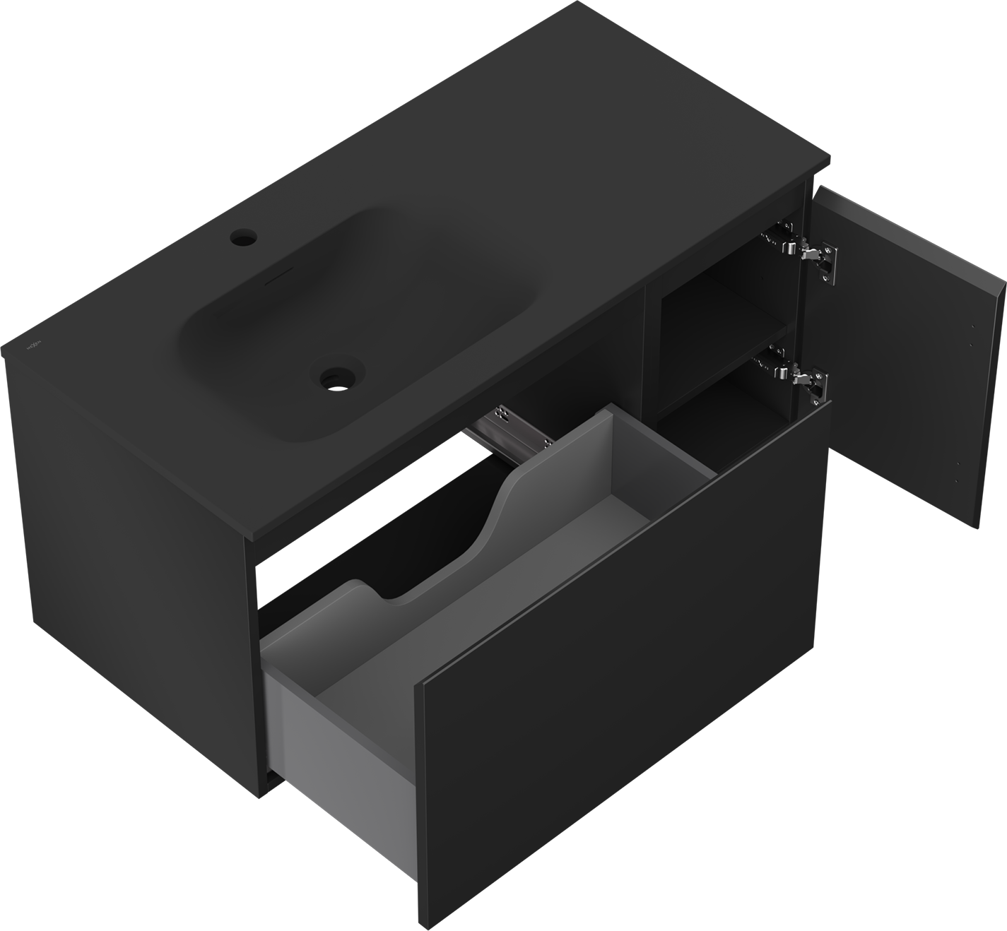 Изрезът в чекмеджето е проектиран по такъв начин, че да побере сифона, който е необходим в мивковите инсталации. Благодарение на това мебелът може да бъде монтиран напълно функционално, без да се налага отказване от пространството в чекмеджето заради инсталацията.