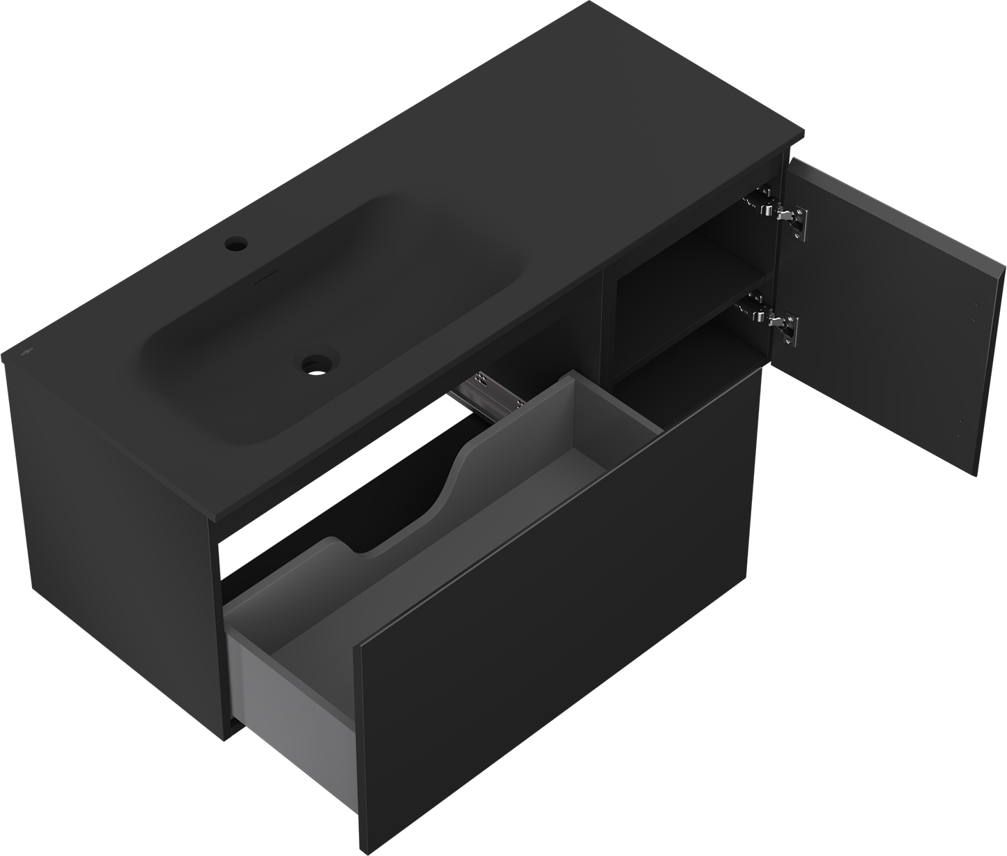Изрезът в чекмеджето е проектиран по такъв начин, че да побере сифона, който е необходим в мивковите инсталации. Благодарение на това мебелът може да бъде монтиран напълно функционално, без да се налага отказване от пространството в чекмеджето заради инсталацията.