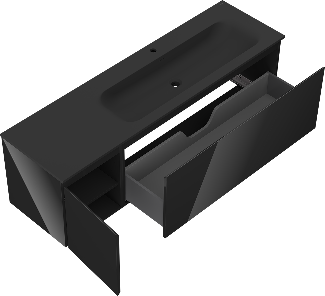 Изрезът в чекмеджето е проектиран по такъв начин, че да побере сифона, който е необходим в мивковите инсталации. Благодарение на това мебелът може да бъде монтиран напълно функционално, без да се налага отказване от пространството в чекмеджето заради инсталацията.