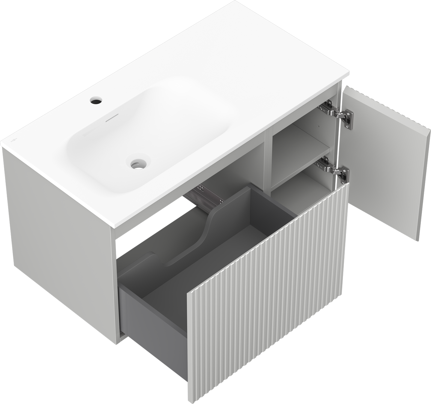 Корпусът на шкафа се доставя напълно сглобен, което означава максимално удобство и спестяване на време. Не е нужно да губите часове за сглобяване на мебела – просто го монтирайте на избраното място в банята. Това е идеалното решение за хора, които ценят бързия монтаж и незабавния ефект.