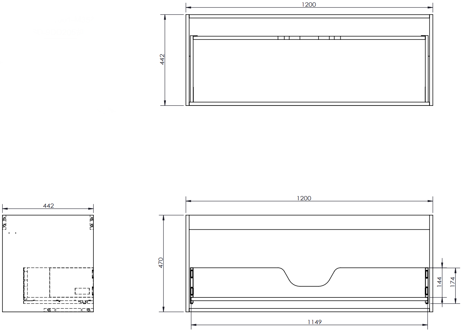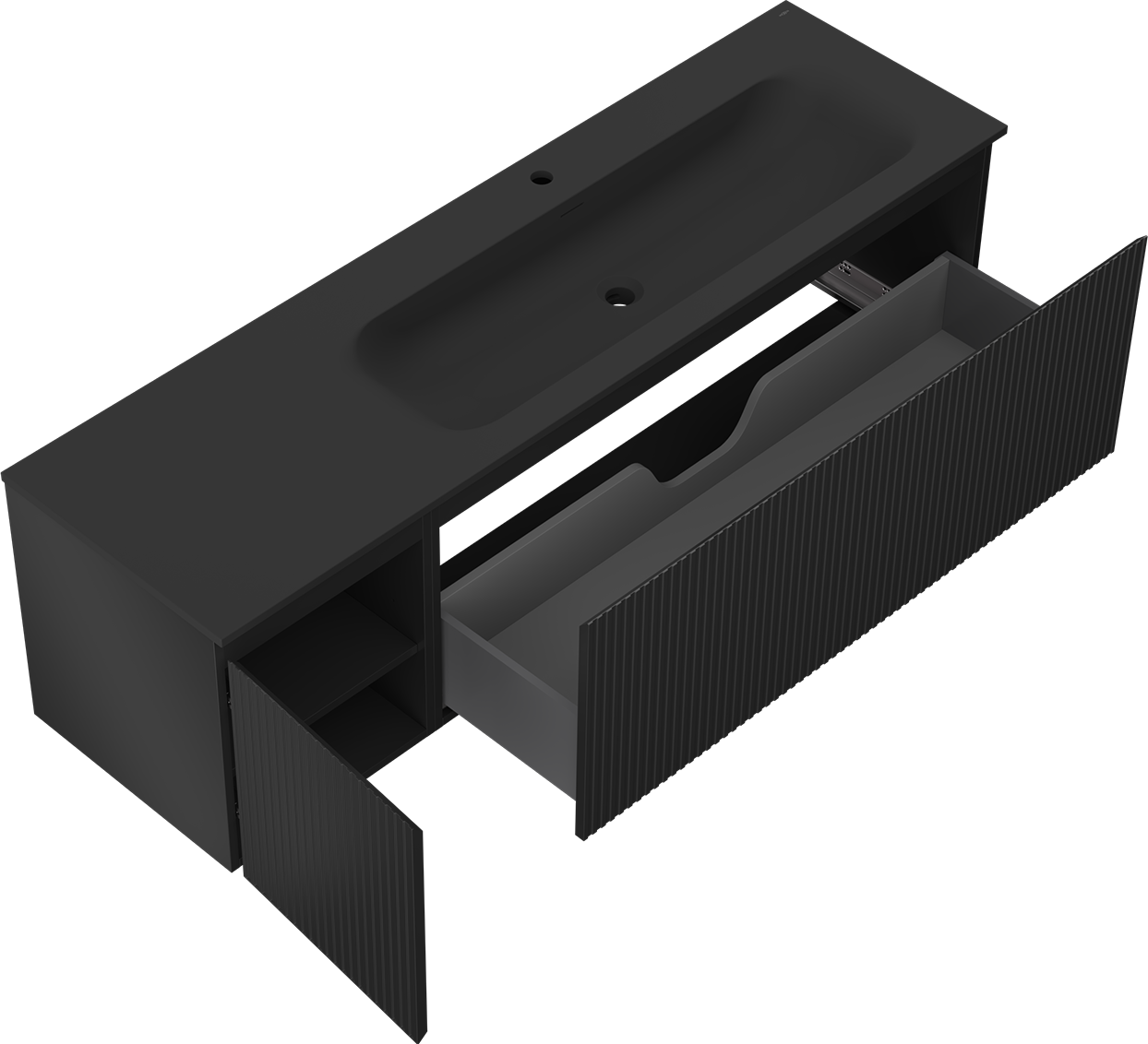 Изрезът в чекмеджето е проектиран по такъв начин, че да побере сифона, който е необходим в мивковите инсталации. Благодарение на това мебелът може да бъде монтиран напълно функционално, без да се налага отказване от пространството в чекмеджето заради инсталацията.