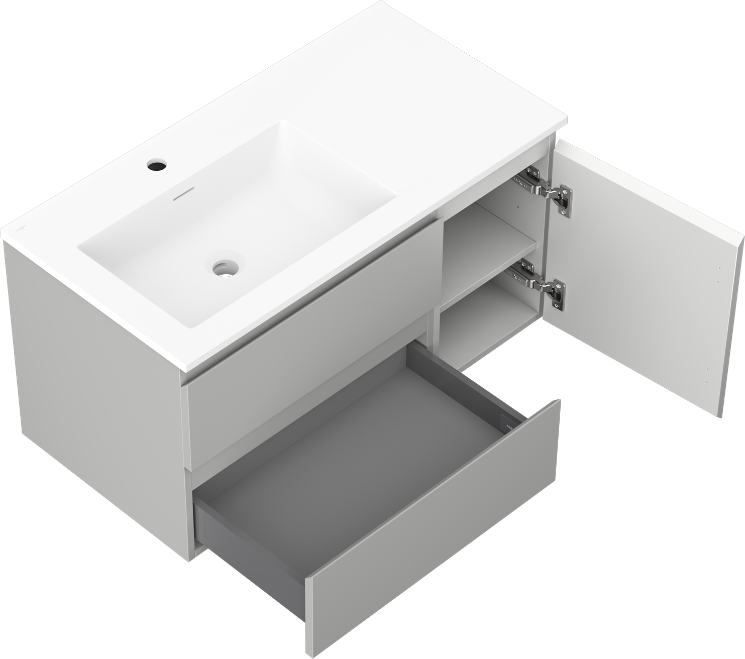 Mexen Orio шкаф за баня 90 см с мивка Otis лява, 2S, 1D, сив мат/бял мат - 91A13-09047-3-BBFFF62-W18L01