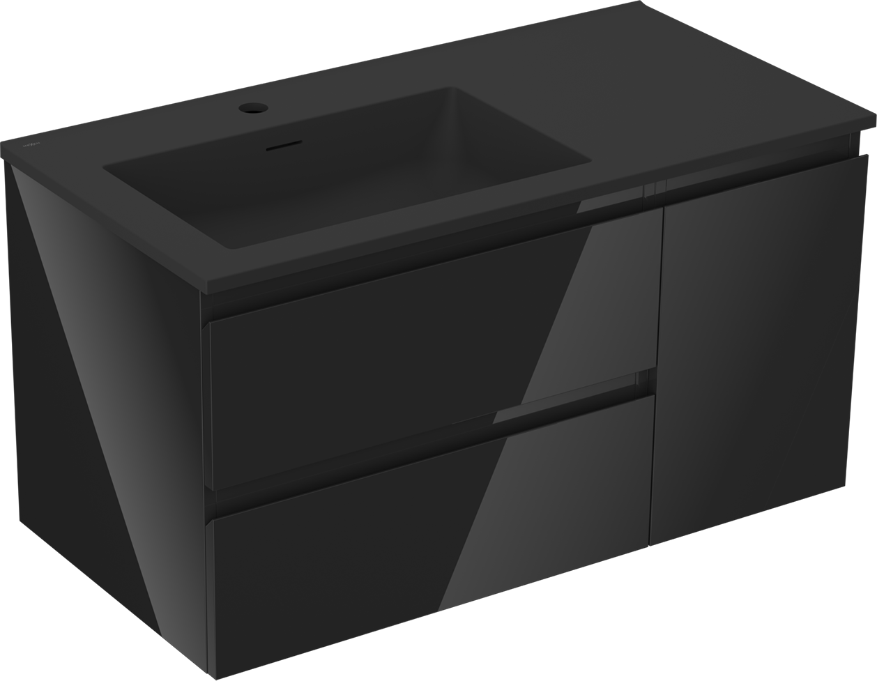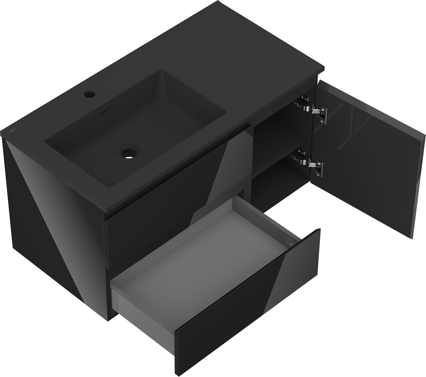 Mexen Orio шкаф за баня 90 см с мивка Otis ляв, 2S, 1D, черен гланц/черен мат