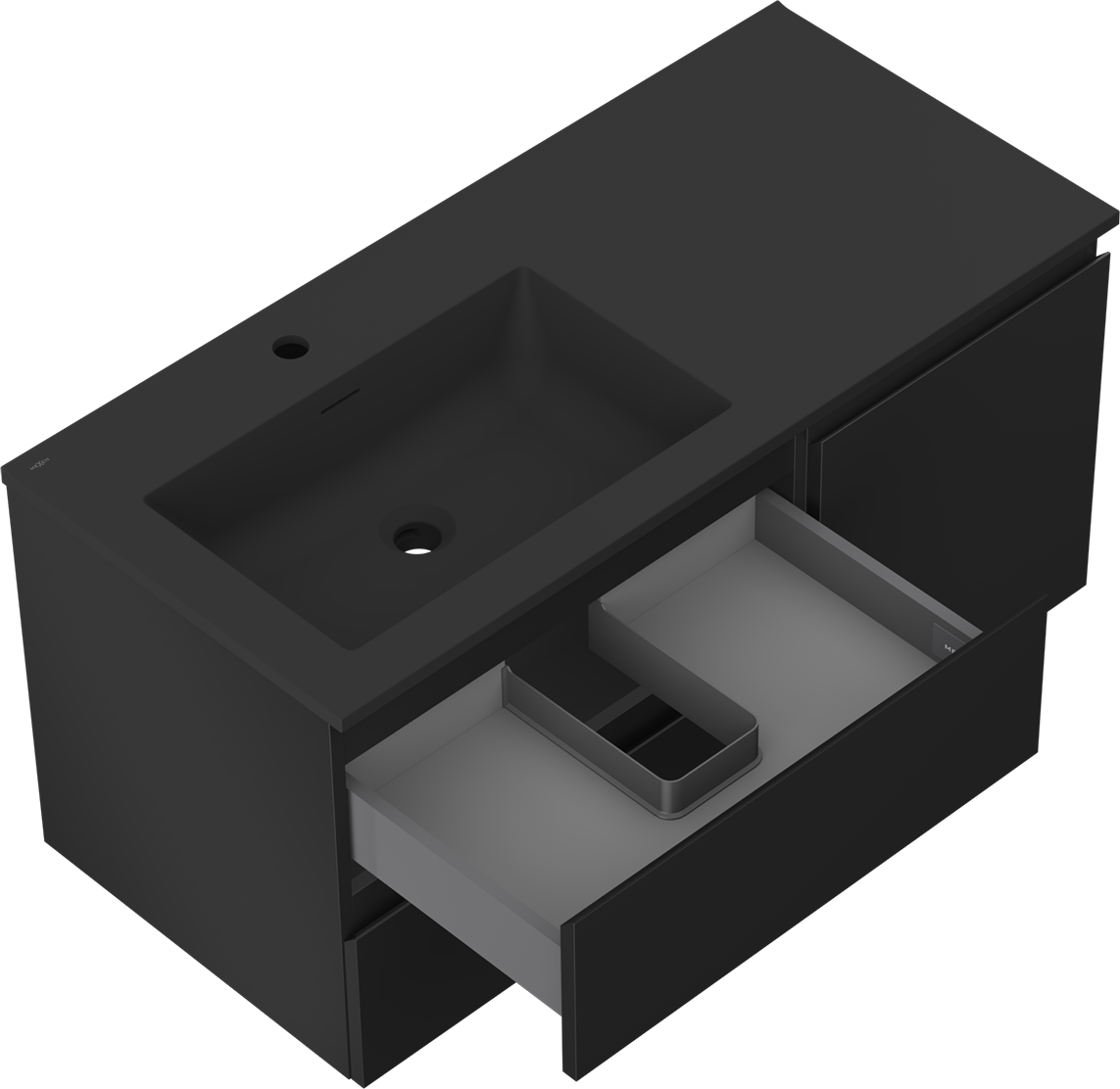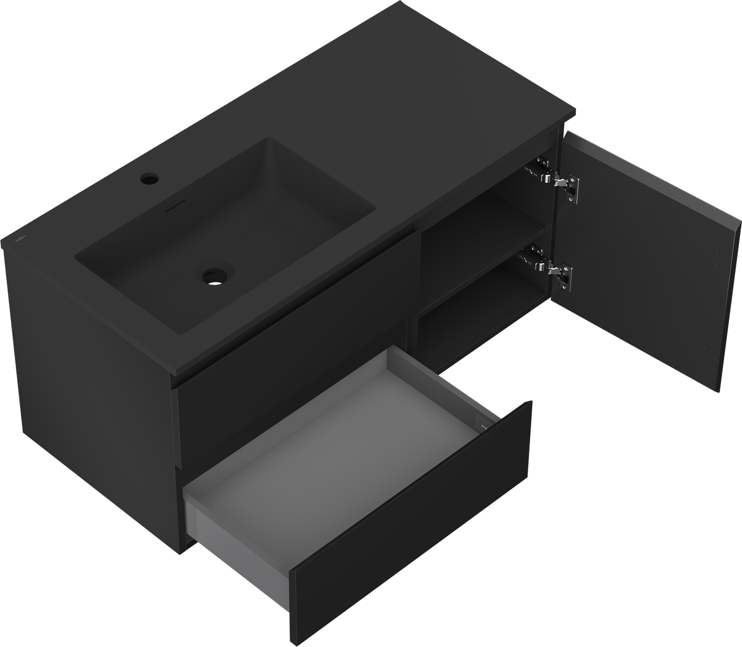 Изрезът в чекмеджето е проектиран по такъв начин, че да побере сифона, който е необходим в мивковите инсталации. Благодарение на това мебелът може да бъде монтиран напълно функционално, без да се налага отказване от пространството в чекмеджето заради инсталацията.