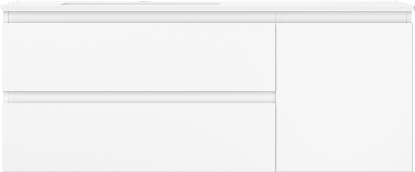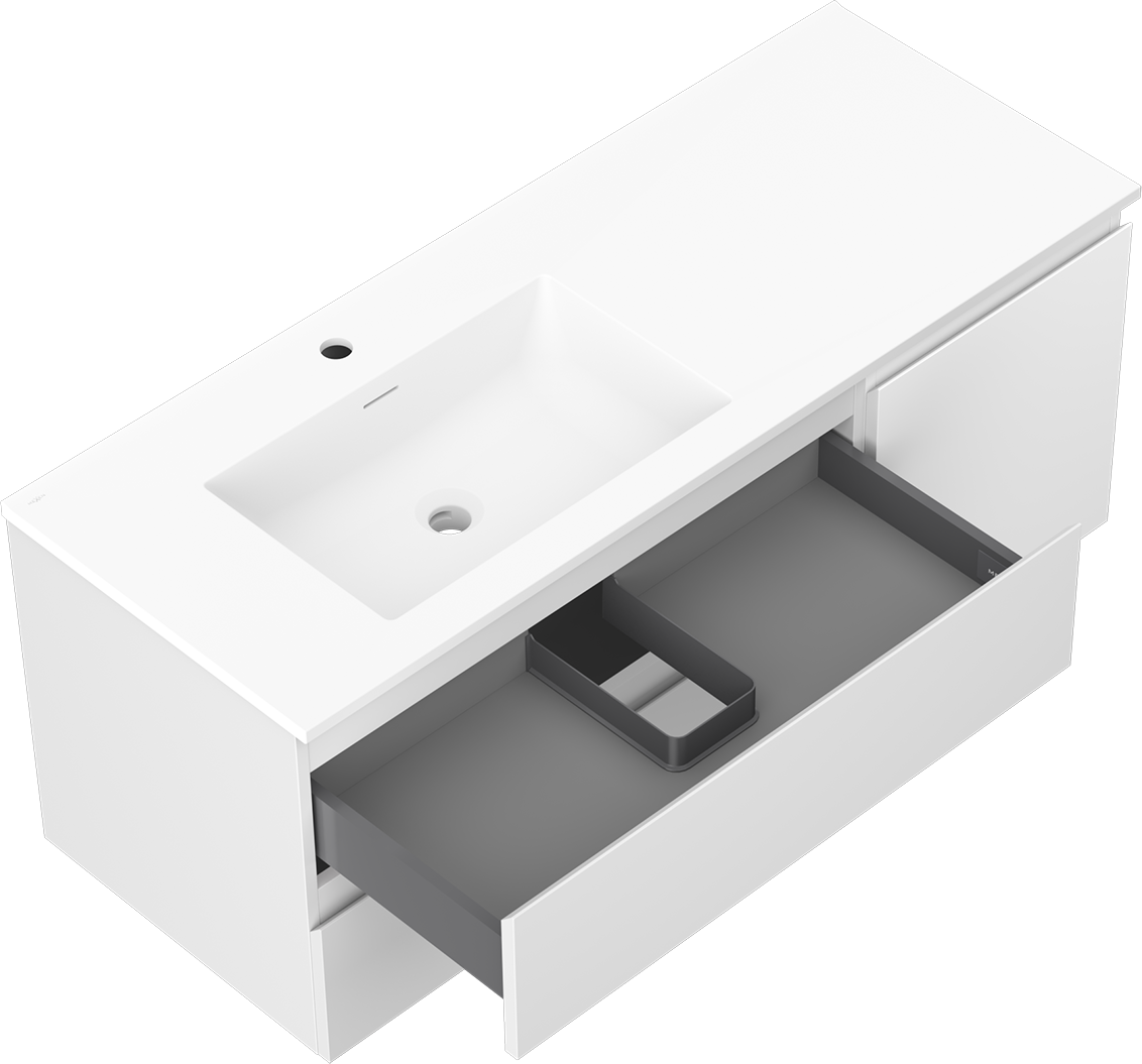 Изрезът в чекмеджето е проектиран по такъв начин, че да побере сифона, който е необходим в мивковите инсталации. Благодарение на това мебелът може да бъде монтиран напълно функционално, без да се налага отказване от пространството в чекмеджето заради инсталацията.