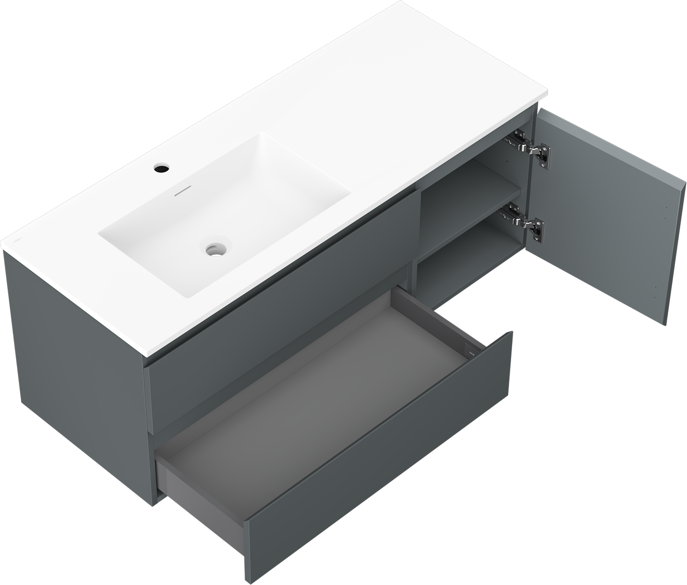 Изрезът в чекмеджето е проектиран по такъв начин, че да побере сифона, който е необходим в мивковите инсталации. Благодарение на това мебелът може да бъде монтиран напълно функционално, без да се налага отказване от пространството в чекмеджето заради инсталацията.