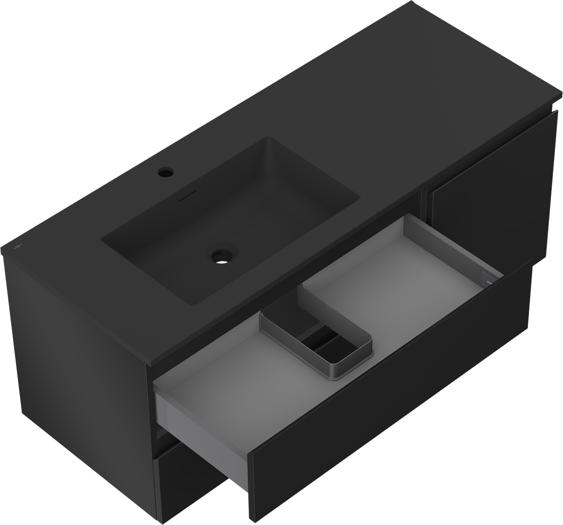 Изрезът в чекмеджето е проектиран по такъв начин, че да побере сифона, който е необходим в мивковите инсталации. Благодарение на това мебелът може да бъде монтиран напълно функционално, без да се налага отказване от пространството в чекмеджето заради инсталацията.