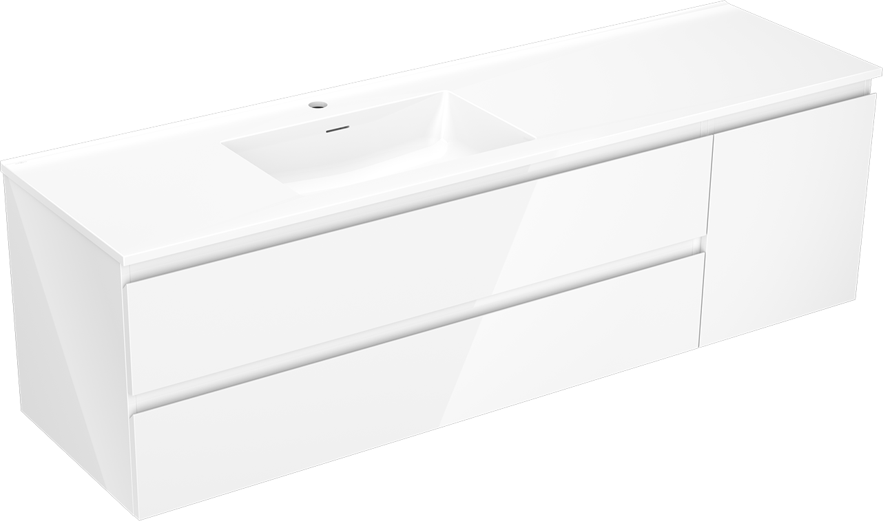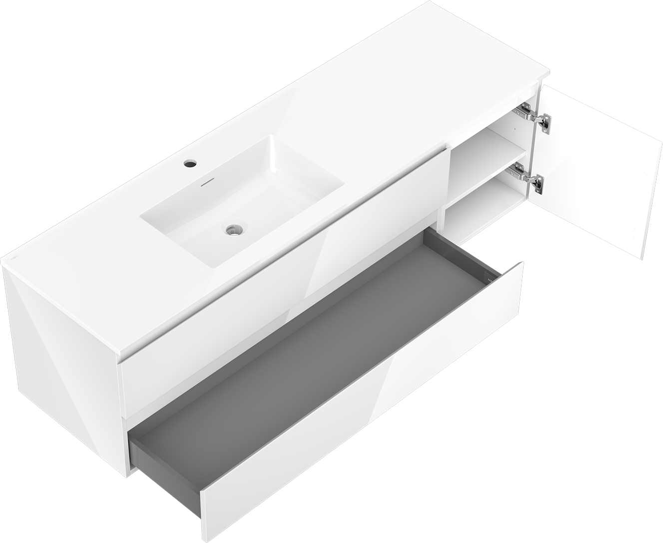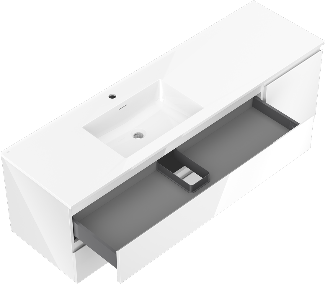 Изрезът в чекмеджето е проектиран по такъв начин, че да побере сифона, който е необходим в мивковите инсталации. Благодарение на това мебелът може да бъде монтиран напълно функционално, без да се налага отказване от пространството в чекмеджето заради инсталацията.