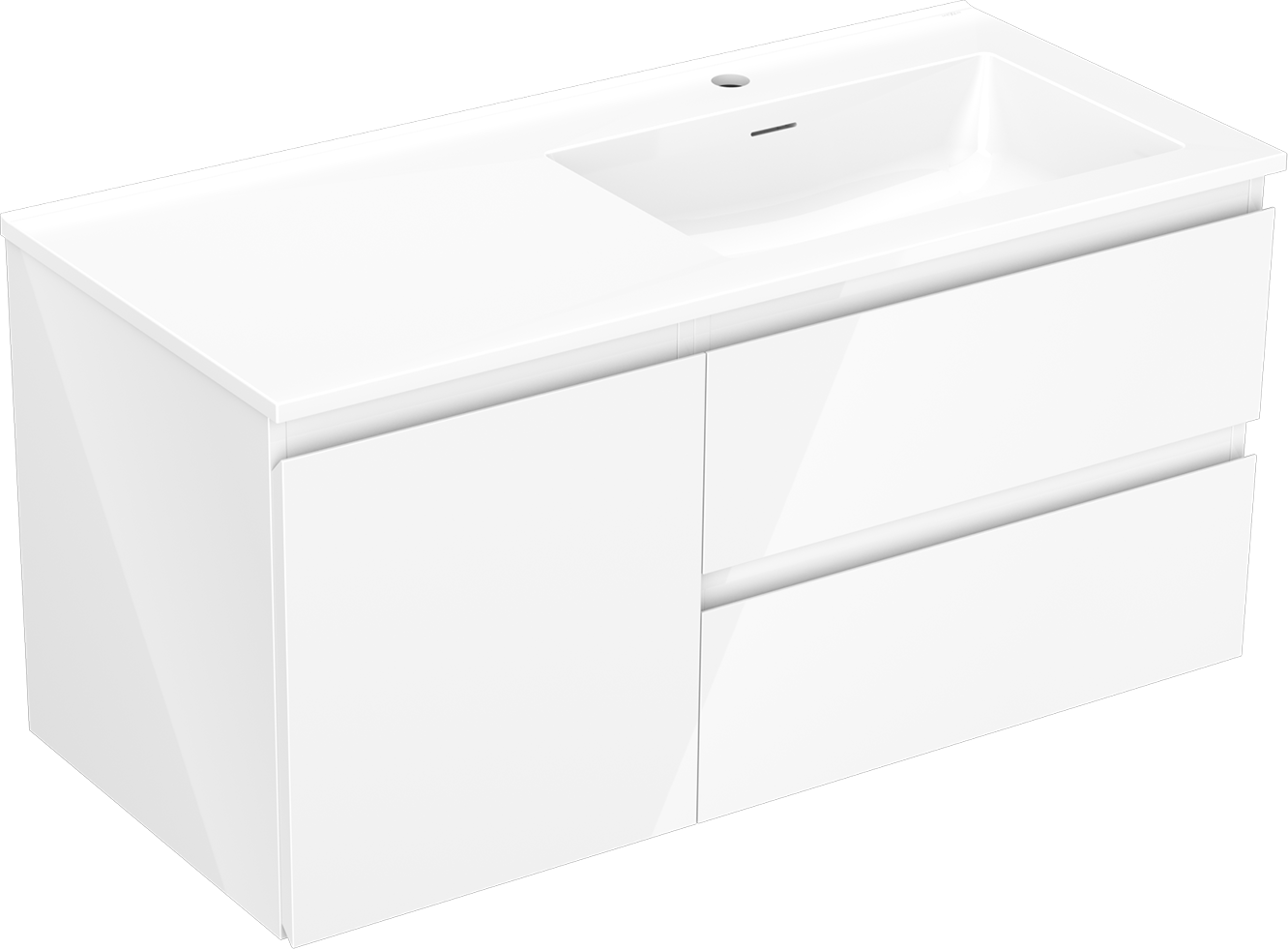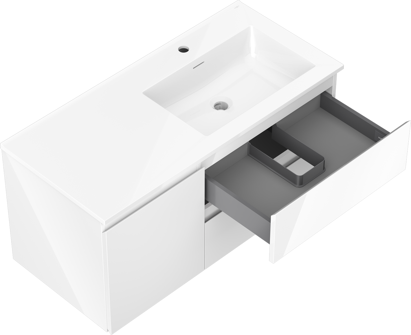 Изрезът в чекмеджето е проектиран по такъв начин, че да побере сифона, който е необходим в мивковите инсталации. Благодарение на това мебелът може да бъде монтиран напълно функционално, без да се налага отказване от пространството в чекмеджето заради инсталацията.