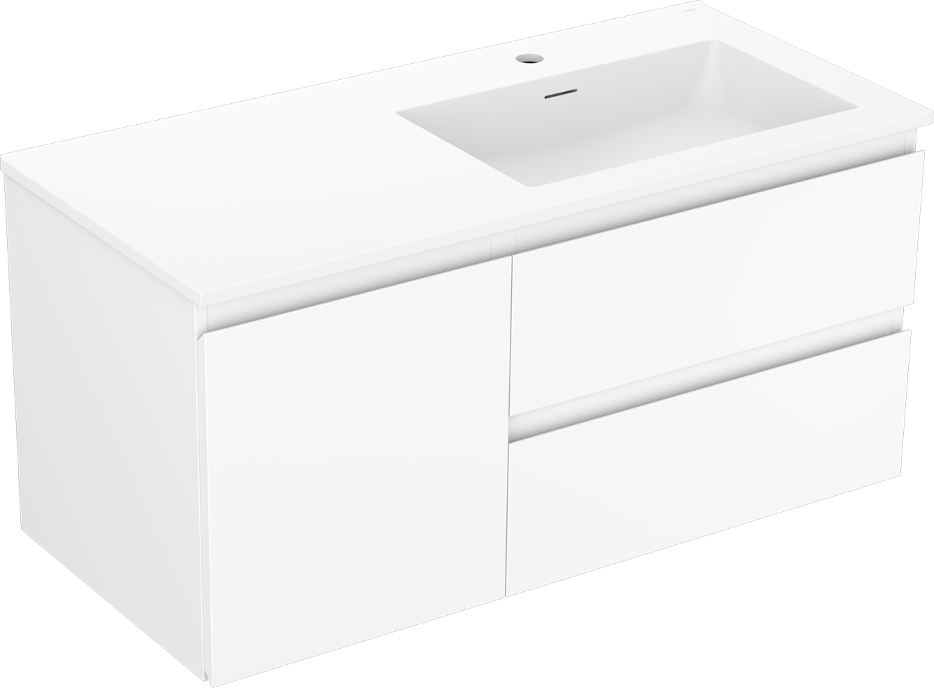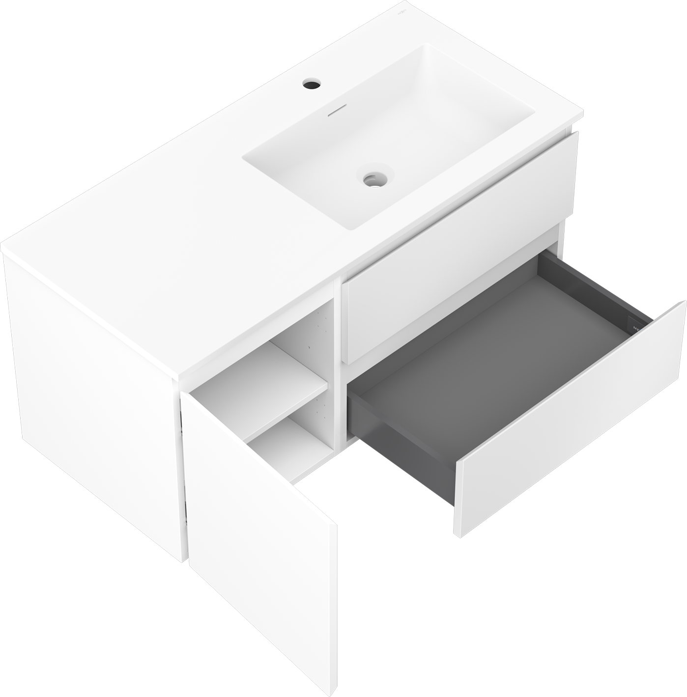 Изрезът в чекмеджето е проектиран по такъв начин, че да побере сифона, който е необходим в мивковите инсталации. Благодарение на това мебелът може да бъде монтиран напълно функционално, без да се налага отказване от пространството в чекмеджето заради инсталацията.