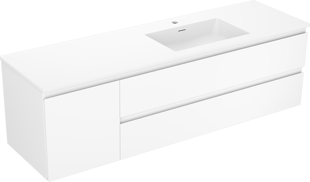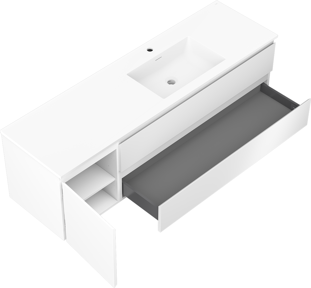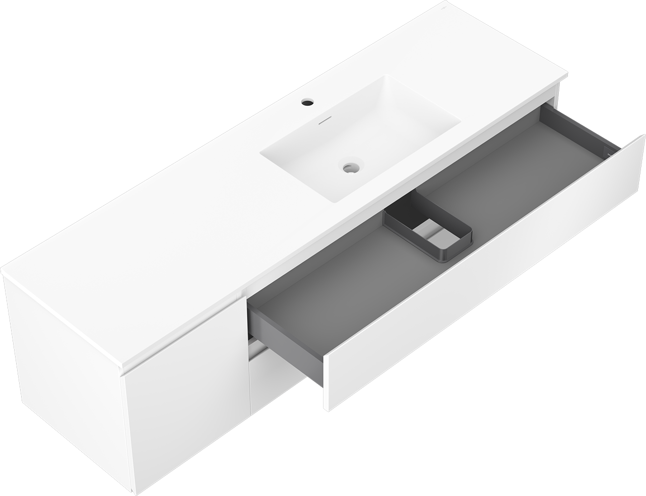 Изрезът в чекмеджето е проектиран по такъв начин, че да побере сифона, който е необходим в мивковите инсталации. Благодарение на това мебелът може да бъде монтиран напълно функционално, без да се налага отказване от пространството в чекмеджето заради инсталацията.
