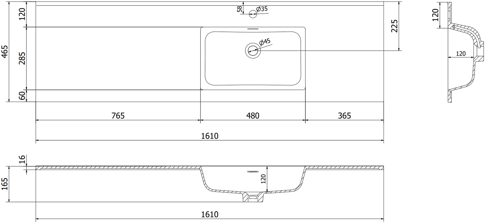 Продуктът е изработен от конгломерат. Характеризира се с гладка повърхност и висока устойчивост на механични повреди и надраскване. Издръжливо решение, запазващо естетичния вид през годините на употреба.