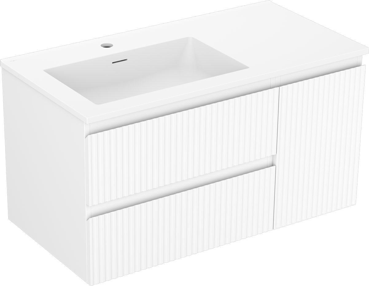 Mexen Rivel баня шкаф 90 см с мивка Otis лява, 2S, 1D, олицована, бял мат - 91A23-09047-3-BBFFF01-W18L01
