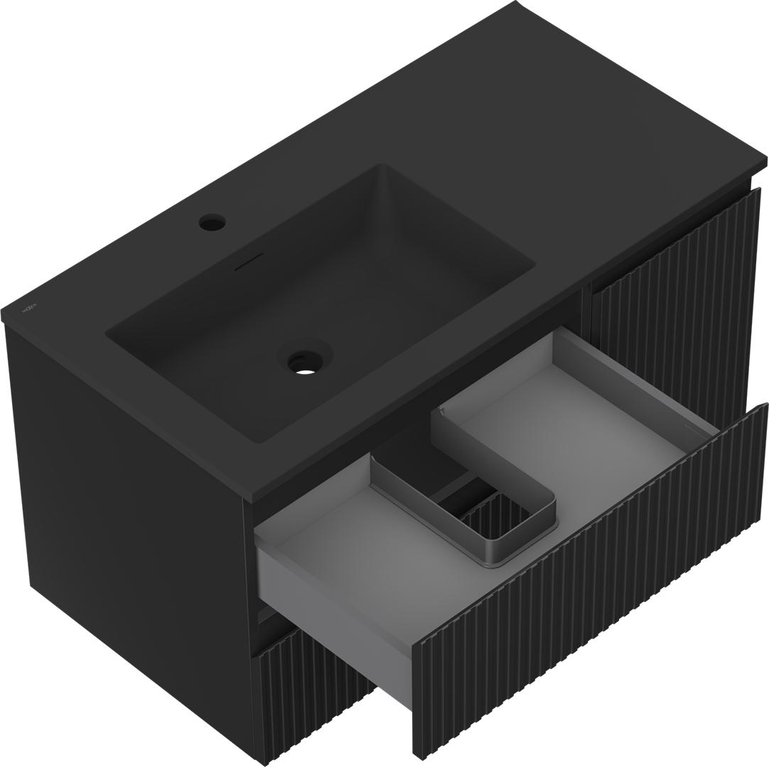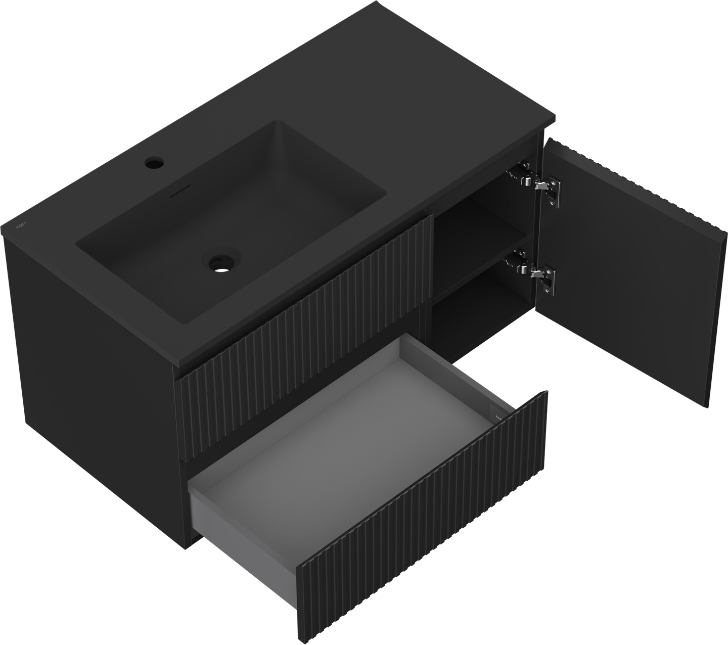 Изрезът в чекмеджето е проектиран по такъв начин, че да побере сифона, който е необходим в мивковите инсталации. Благодарение на това мебелът може да бъде монтиран напълно функционално, без да се налага отказване от пространството в чекмеджето заради инсталацията.