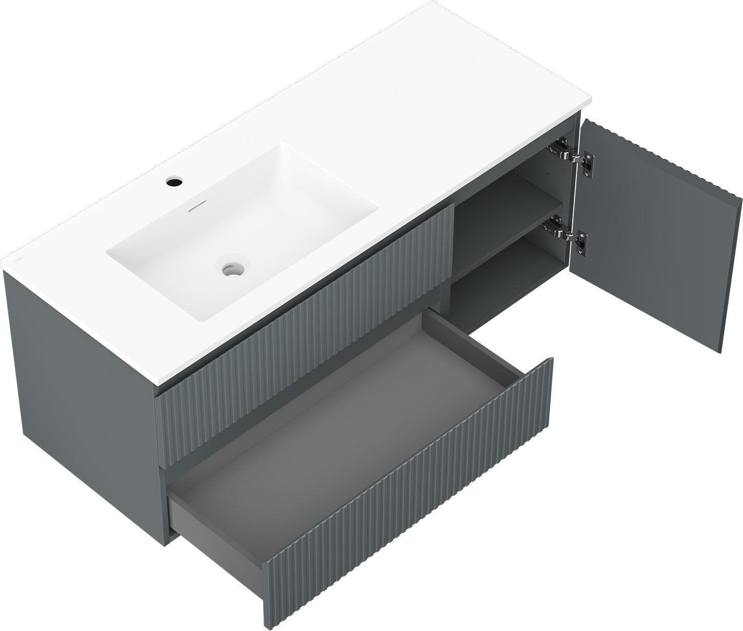 Изрезът в чекмеджето е проектиран по такъв начин, че да побере сифона, който е необходим в мивковите инсталации. Благодарение на това мебелът може да бъде монтиран напълно функционално, без да се налага отказване от пространството в чекмеджето заради инсталацията.