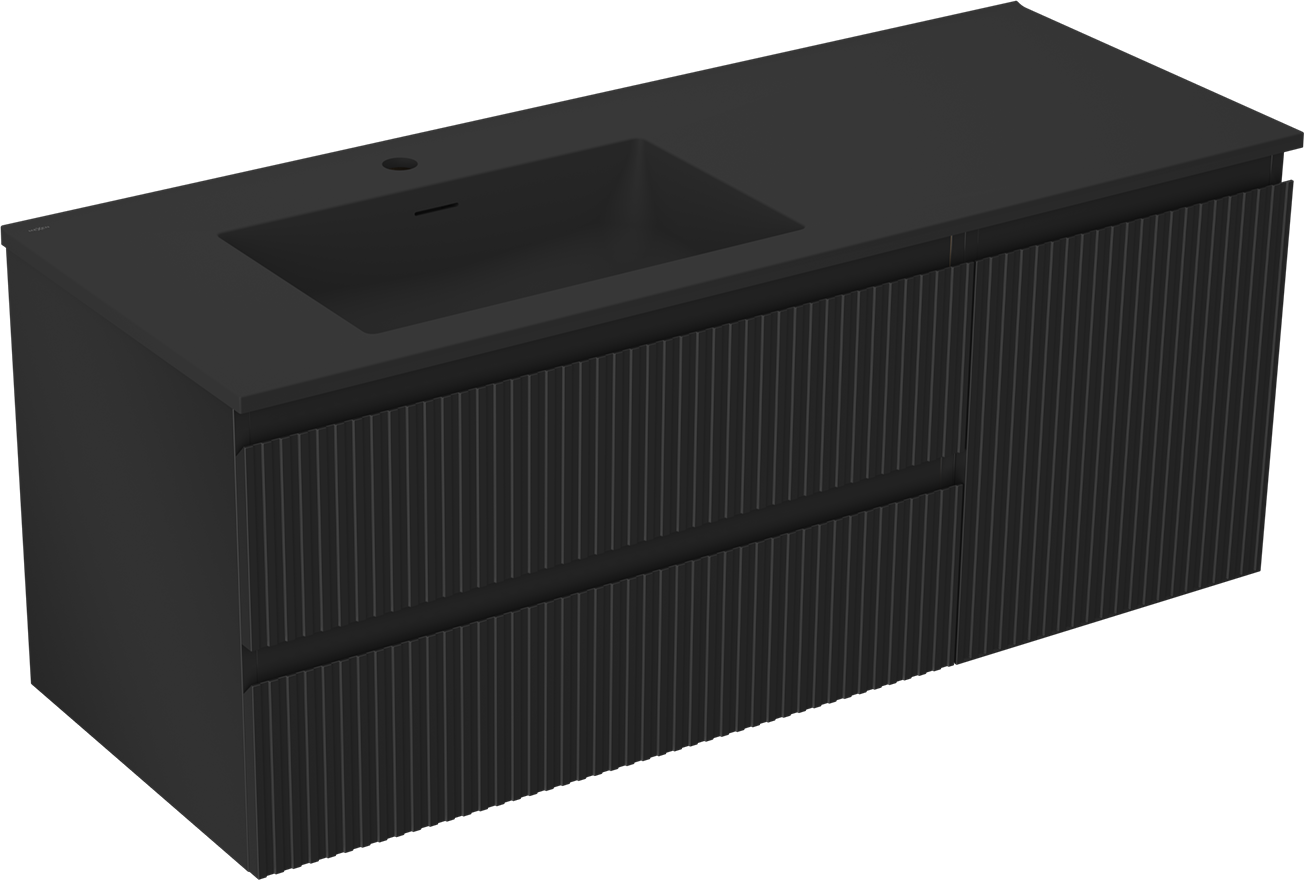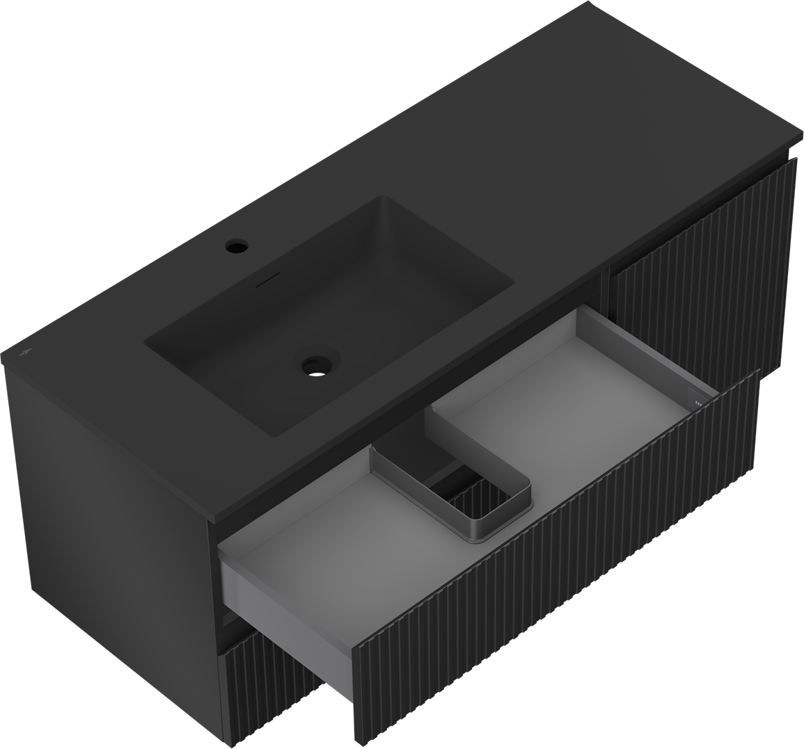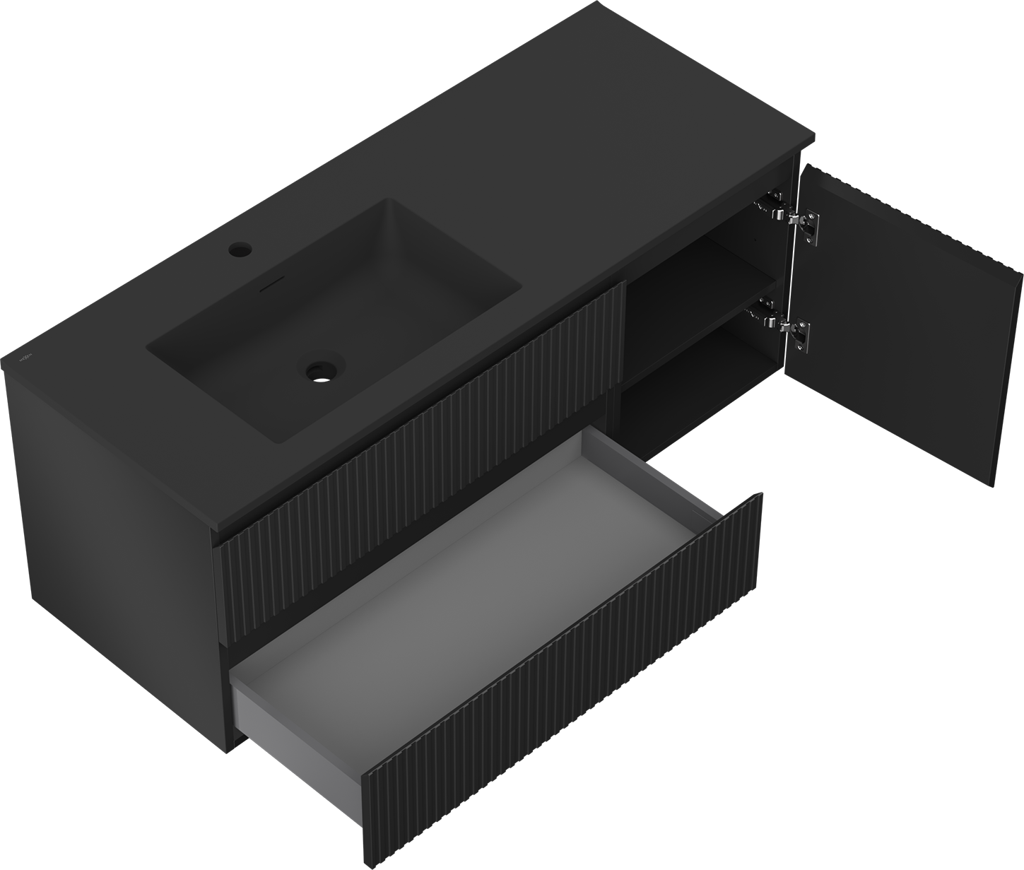 Изрезът в чекмеджето е проектиран по такъв начин, че да побере сифона, който е необходим в мивковите инсталации. Благодарение на това мебелът може да бъде монтиран напълно функционално, без да се налага отказване от пространството в чекмеджето заради инсталацията.