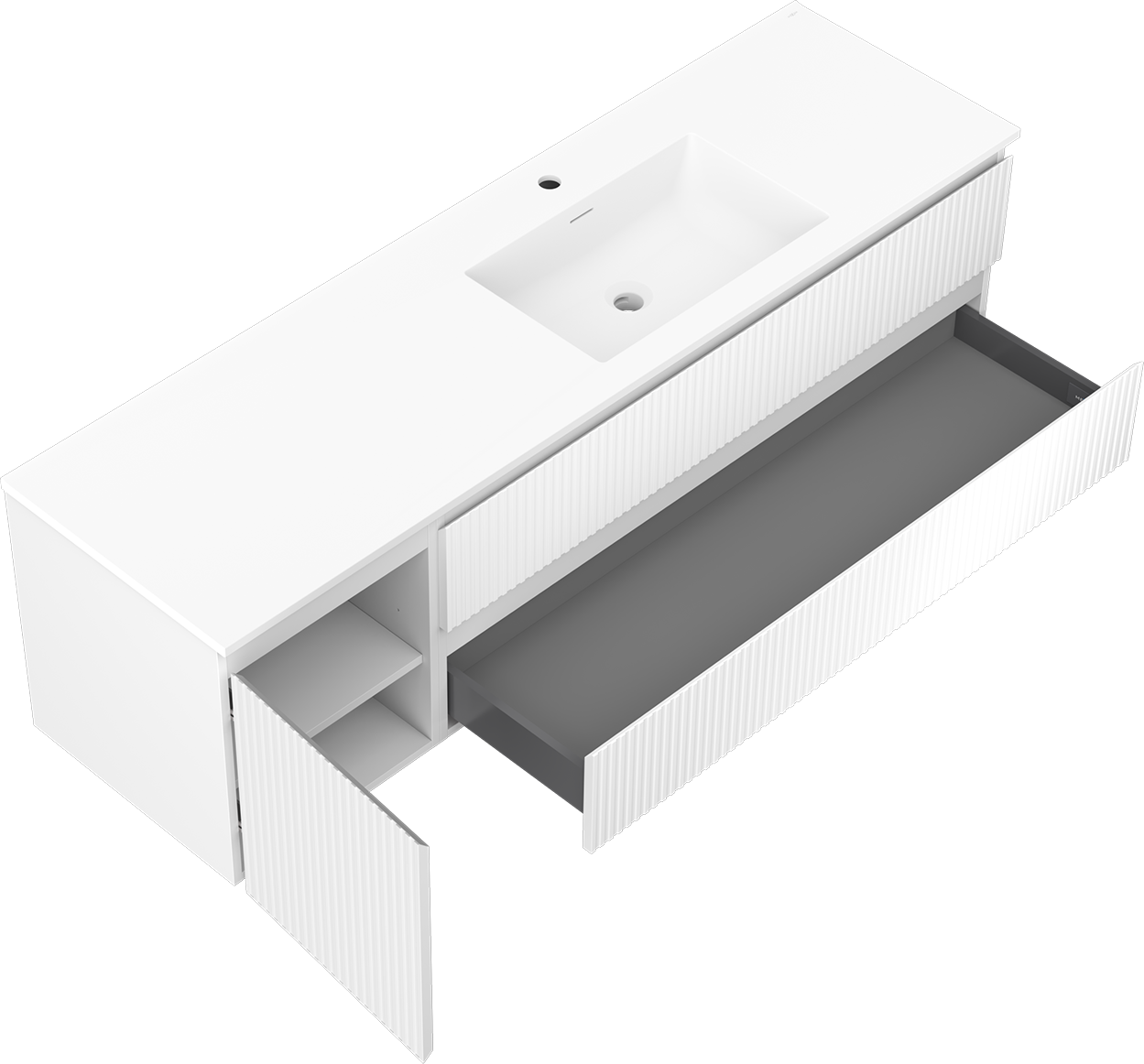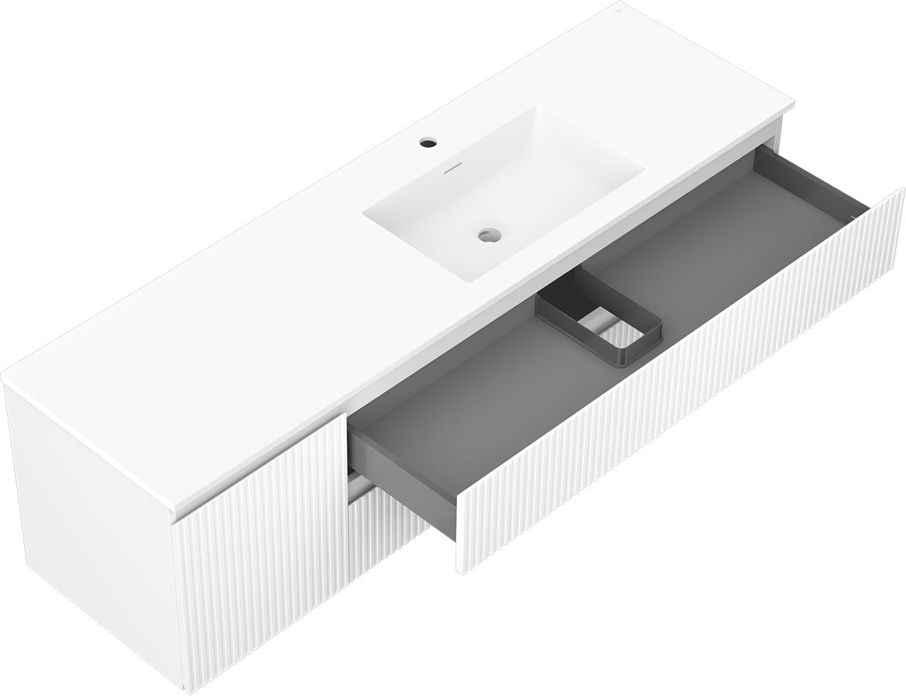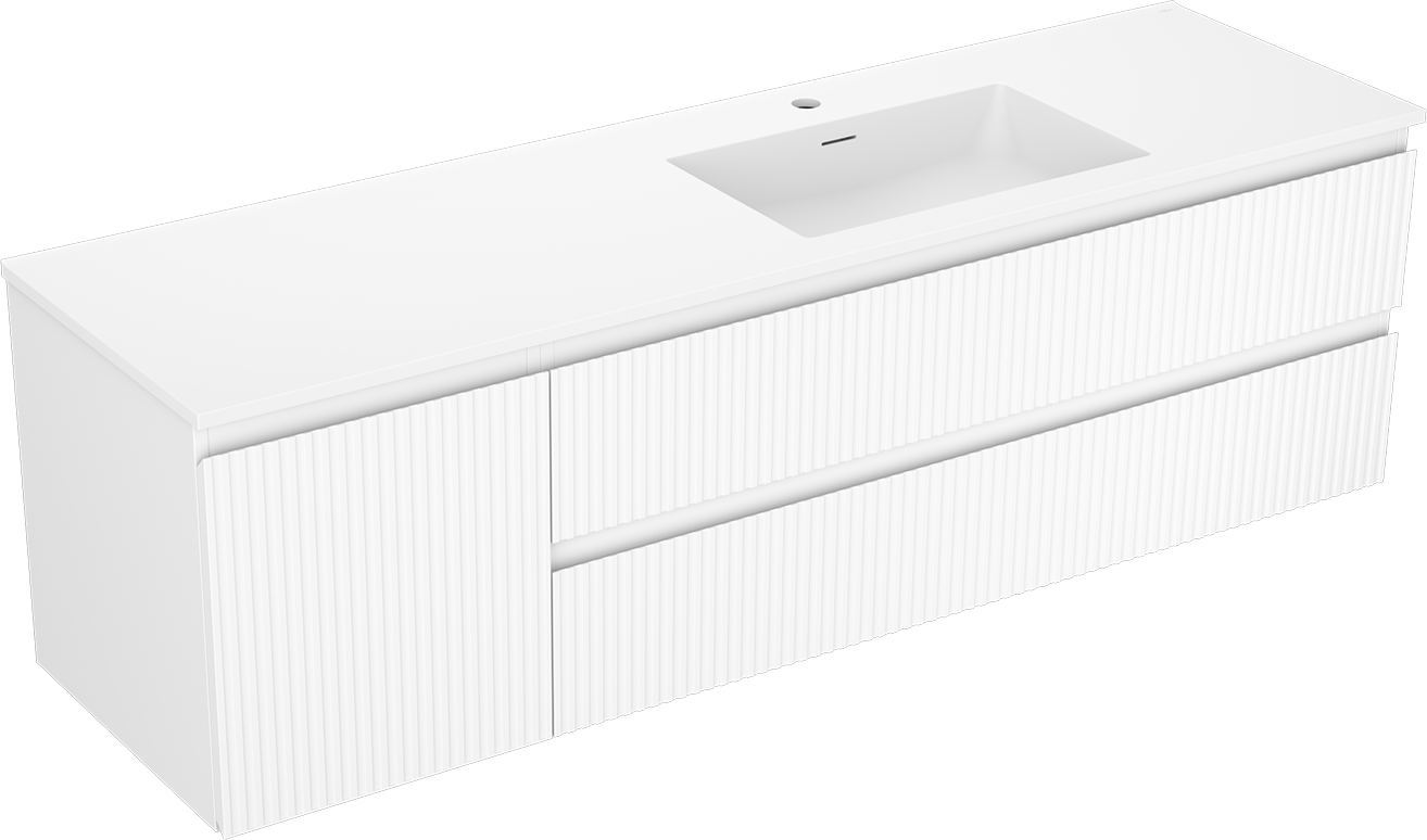 Изрезът в чекмеджето е проектиран по такъв начин, че да побере сифона, който е необходим в мивковите инсталации. Благодарение на това мебелът може да бъде монтиран напълно функционално, без да се налага отказване от пространството в чекмеджето заради инсталацията.