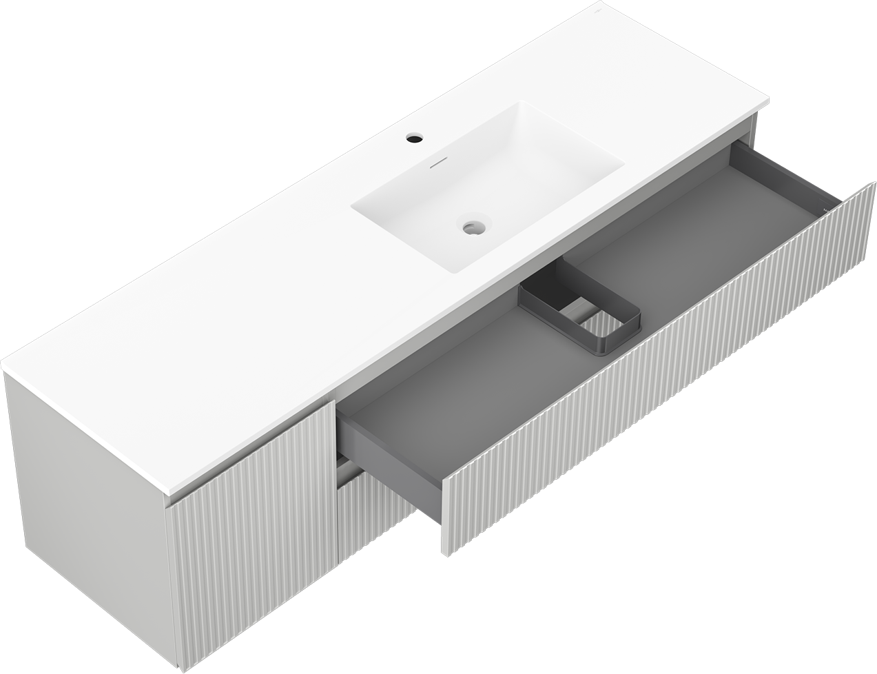 Изрезът в чекмеджето е проектиран по такъв начин, че да побере сифона, който е необходим в мивковите инсталации. Благодарение на това мебелът може да бъде монтиран напълно функционално, без да се налага отказване от пространството в чекмеджето заради инсталацията.