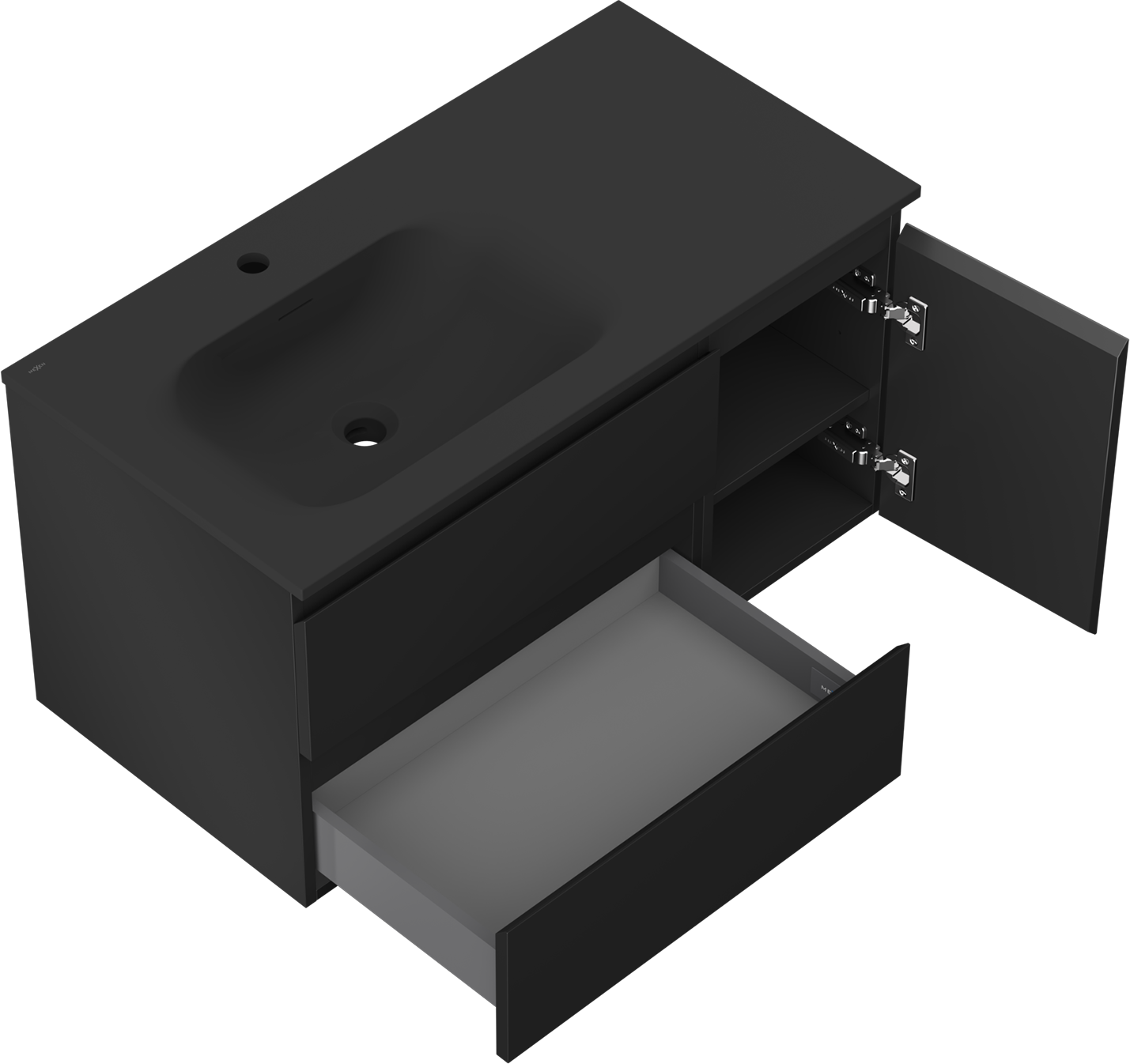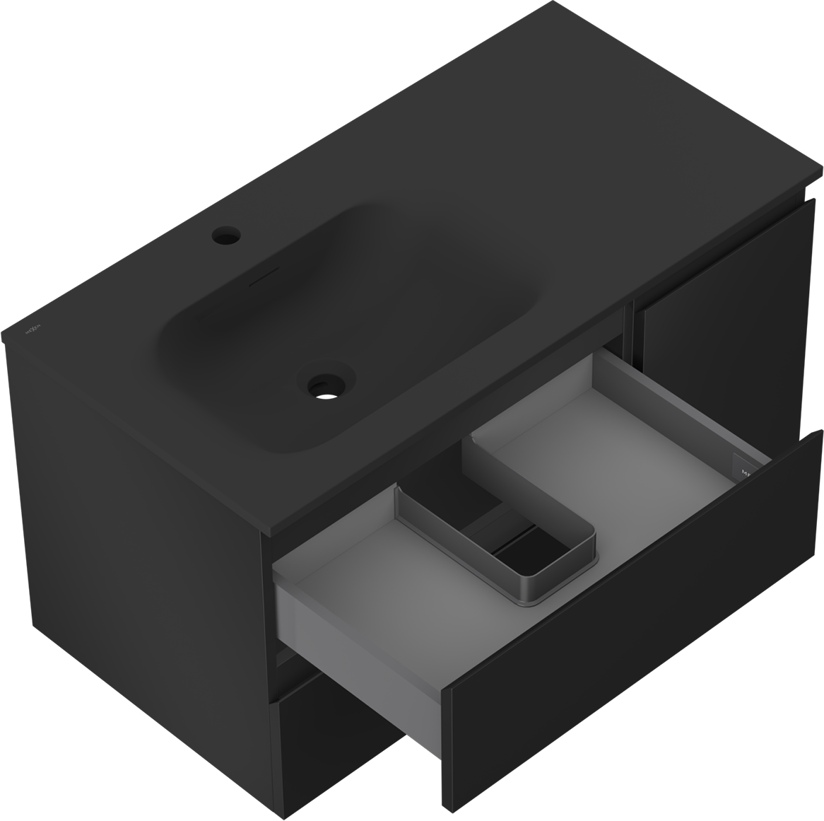 Изрезът в чекмеджето е проектиран по такъв начин, че да побере сифона, който е необходим в мивковите инсталации. Благодарение на това мебелът може да бъде монтиран напълно функционално, без да се налага отказване от пространството в чекмеджето заради инсталацията.