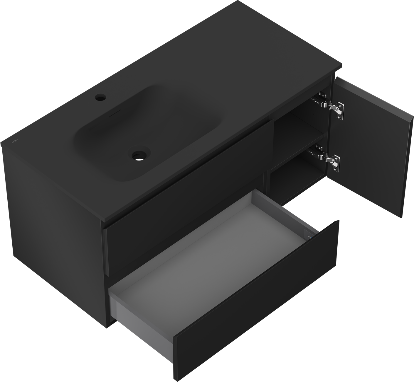 Mexen Orio шкаф за баня 100 см с мивка Vela лява, 2S, 1D, черна мат - 91A13-10047-3-BBFFF71-W23L71