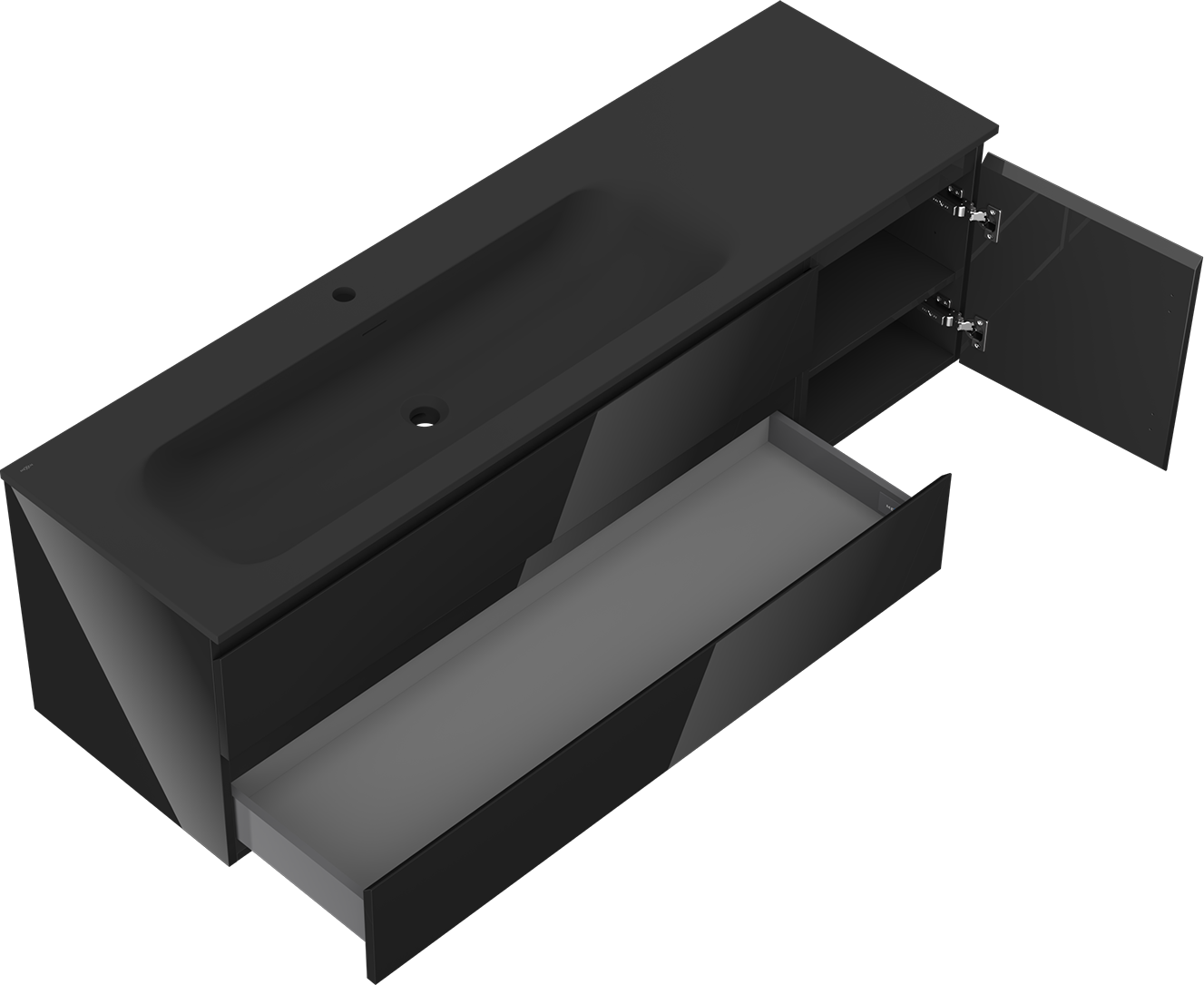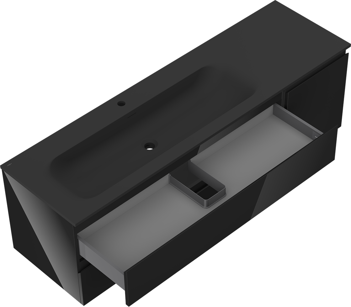 Изрезът в чекмеджето е проектиран по такъв начин, че да побере сифона, който е необходим в мивковите инсталации. Благодарение на това мебелът може да бъде монтиран напълно функционално, без да се налага отказване от пространството в чекмеджето заради инсталацията.