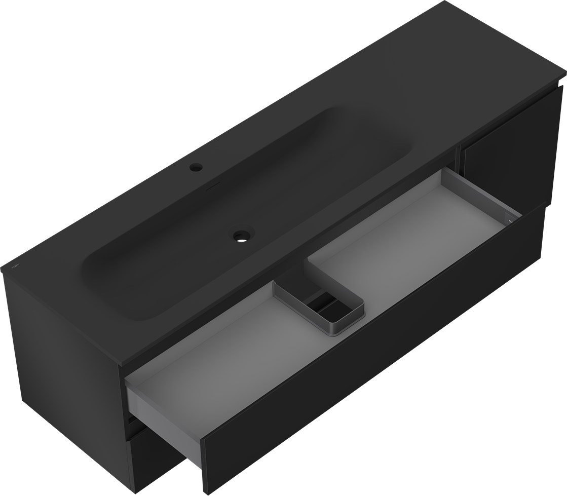 Изрезът в чекмеджето е проектиран по такъв начин, че да побере сифона, който е необходим в мивковите инсталации. Благодарение на това мебелът може да бъде монтиран напълно функционално, без да се налага отказване от пространството в чекмеджето заради инсталацията.