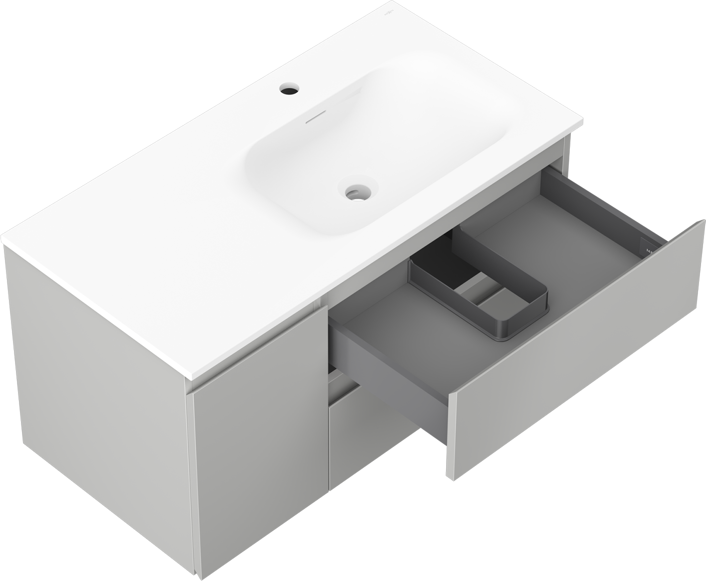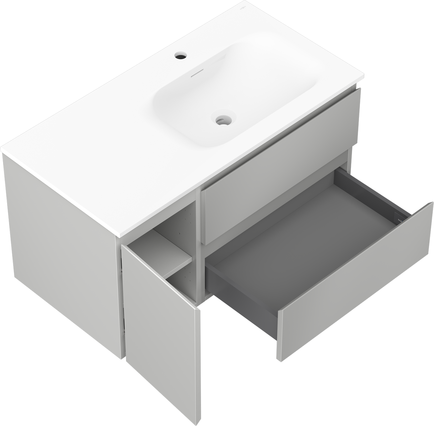 Изрезът в чекмеджето е проектиран по такъв начин, че да побере сифона, който е необходим в мивковите инсталации. Благодарение на това мебелът може да бъде монтиран напълно функционално, без да се налага отказване от пространството в чекмеджето заради инсталацията.
